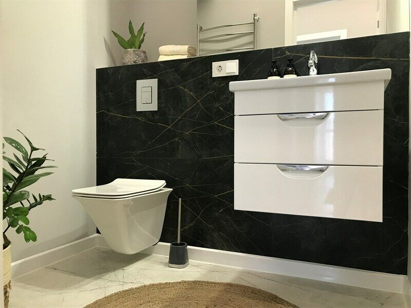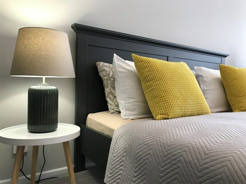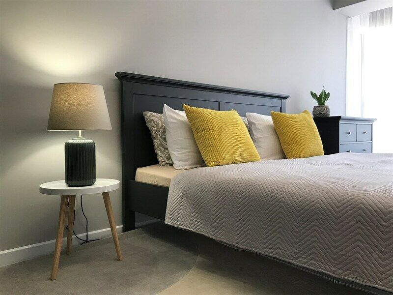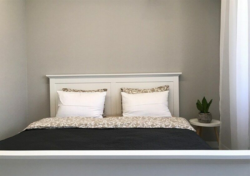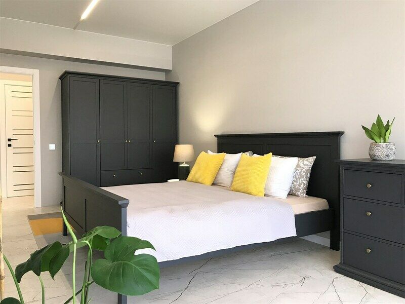 Две двуспальные кровати, диван-кровать, кондиционер, телевизор, КУХНЯ (микроволновая печь, холодильник, плита, чайник, посуда), стиральная машина, санузел (душ+туалет)