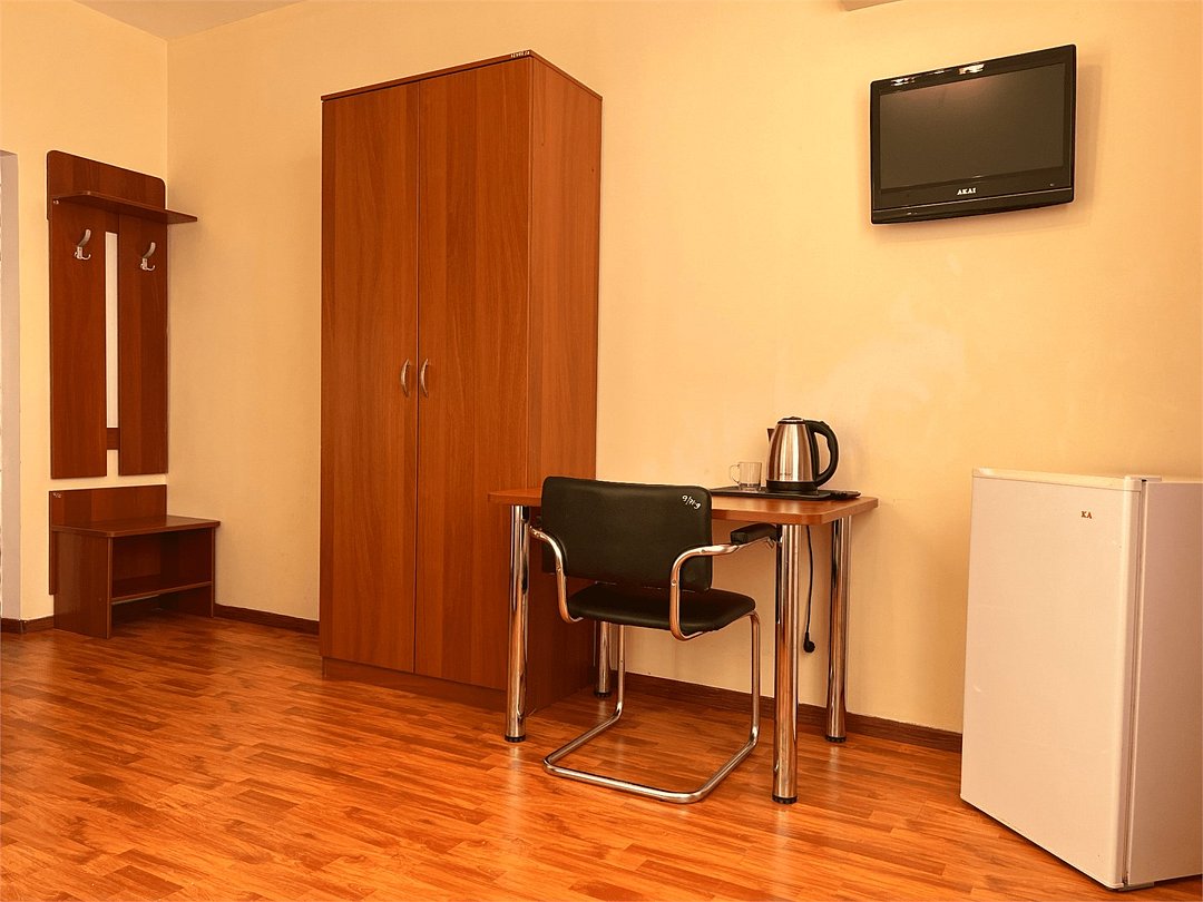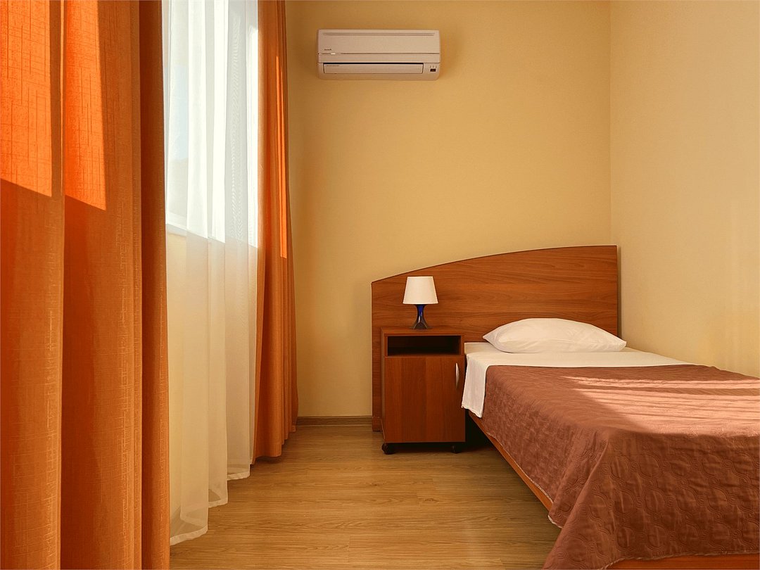 Одноместный номер категории "Стандарт", с просторным балконом. В номере: телевизор, кондиционер, мини-холодильник, совместный санузел, душевая кабина. Горячая, холодная вода.Услуги и удобства