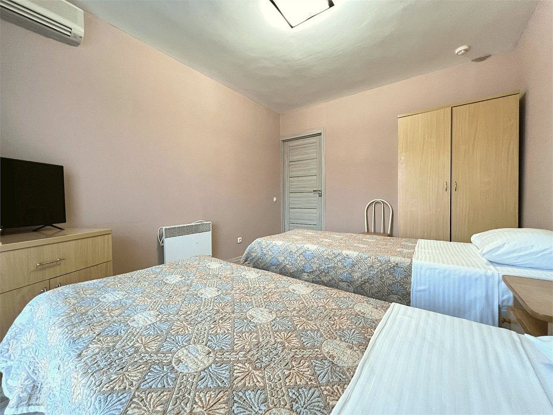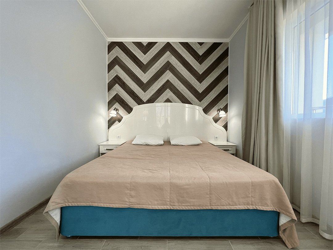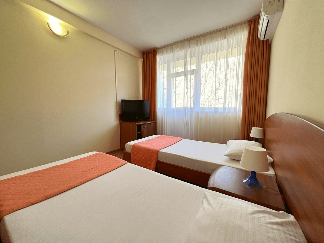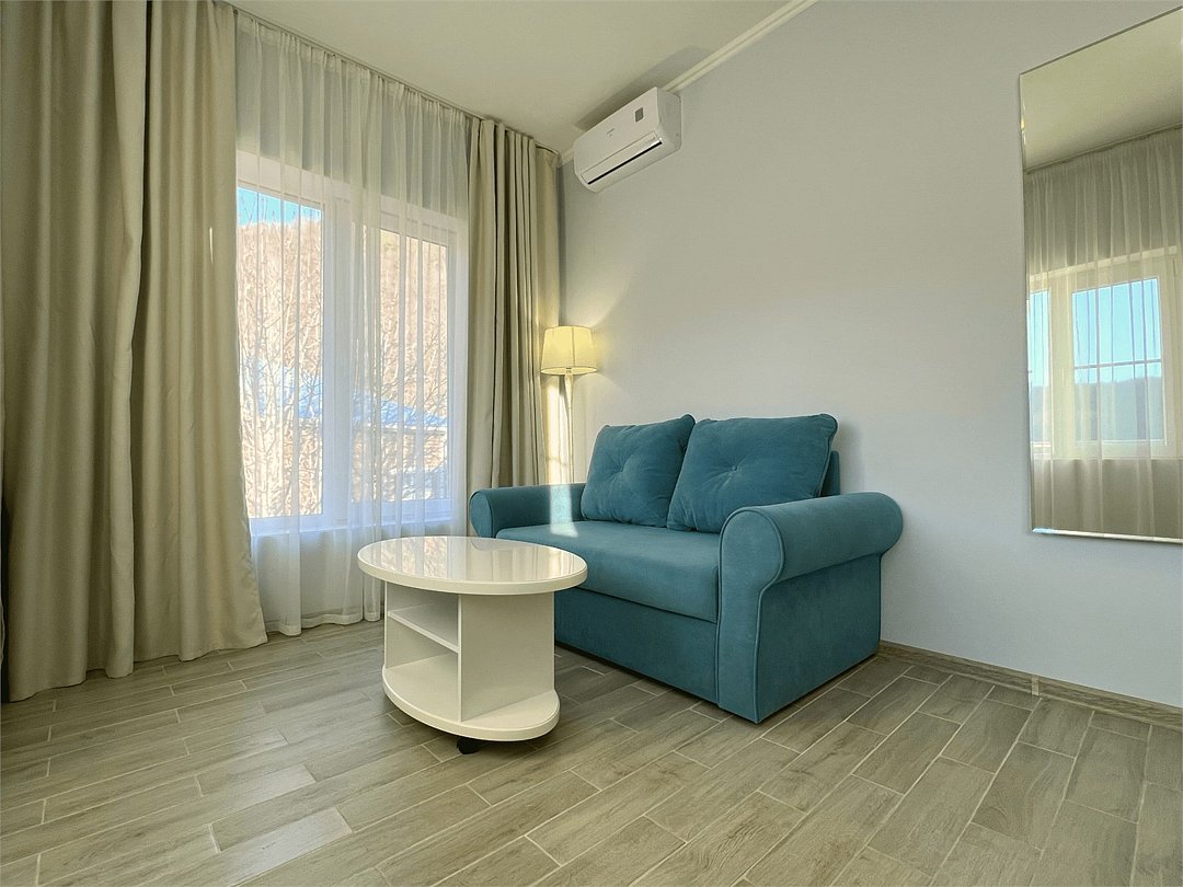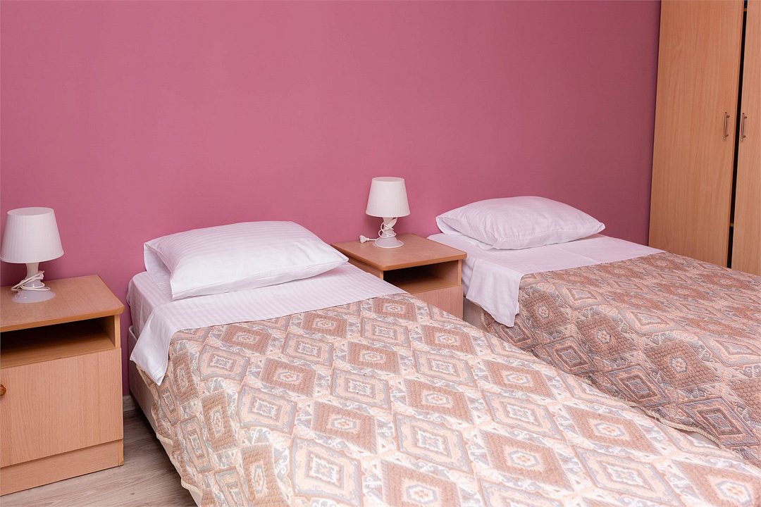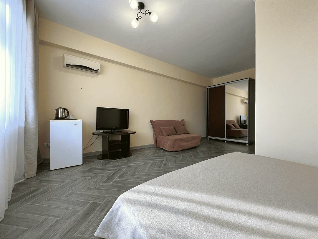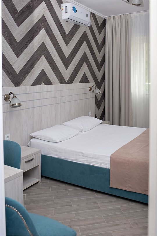 Двухместный номер категории "Стандарт". В номере есть все для комфортного пребывания двух отдыхающих. Номер оснащен кондиционером, телевизором, барным холодильником. Санузел совместный. Просторный балкон.Услуги и удобства