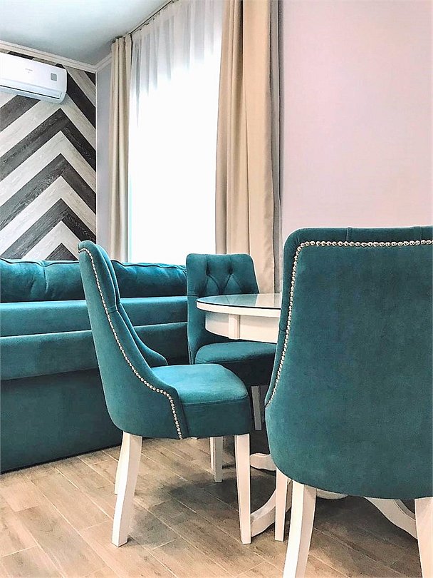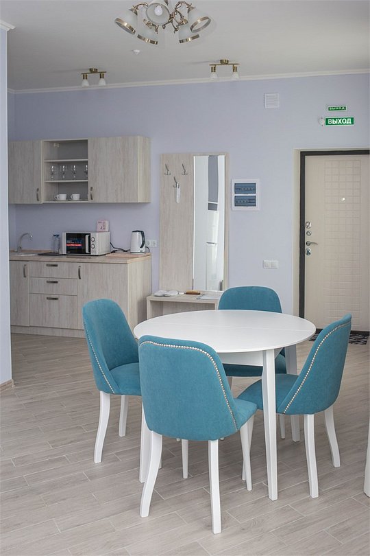 Двухкомнатный просторный номер. В каждой комнате 2 кровати, 2 тумбочки, шкаф, телевизор, кондиционер. В общей комнате есть холодильник и обеденный стол. Раздельный санузел. Отдельный вход.Услуги и удобства