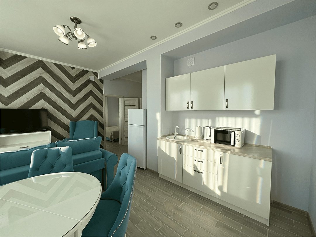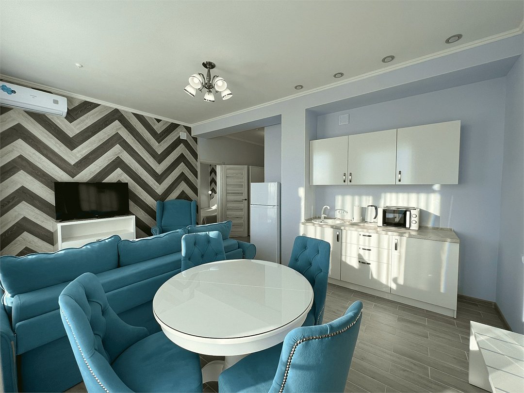 Wi-Fi, холодильник, кондиционер, фен, плита для приготовления пищи, микроволновая печь, утюг, обогреватель, душевая кабина, биде, водонагреватель, халаты, банные полотенца, тапочки, гигиенические средства, балкон, балкон с красивым видом, двуспальная кровать, гладильная доска, стулья, шкаф для одежды, обеденный стол, багажная тумба, зеркало, две комнаты, кухня, чайный набор, набор посуды, чайник, унитаз, раковина, мягкая мебель, гостиная зона, вид на море, кресло, стаканы, столовые приборы, стул, стол, раскладной диван, шкаф-купе, гостиничная парфюмерия, телевизор со Smart TV, номер для некурящих, шапочка для душа, мыло, можно с питомцамиВ номере