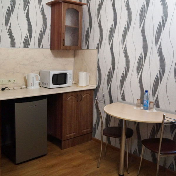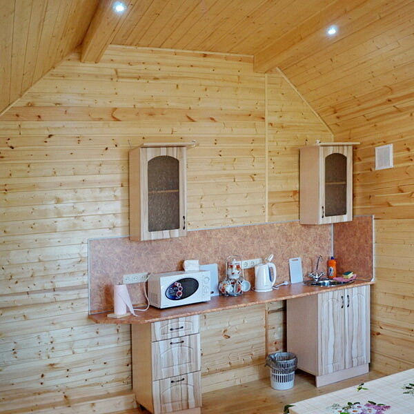 Питаются отдыхающие самостоятельно в кухне-столовой, размещенной на 1-ом этаже гостевого дома. Кухня оборудована всем необходимым как для приготовления еды, так и для приема пищи.
