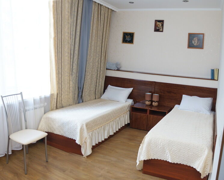 В номере: две раздельные кровати, шкаф для одежды, журнальный столик, плазменный телевизор, холодильник.