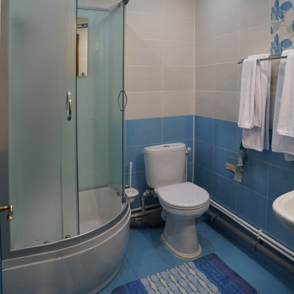 Комнаты меблированы как раздельными, так и двуспальными кроватями. Каждая оформлена в особом стиле. В ванных комнатах установлены душевые кабины.