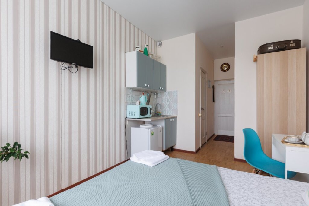Чтобы вы могли отдохнуть после долгого дня, в номере есть телевизор. Оснащение зависит от выбранной категории номера.