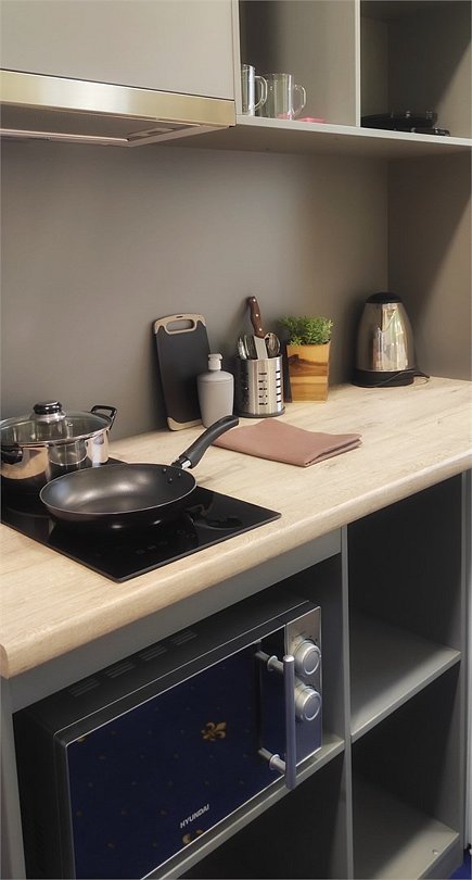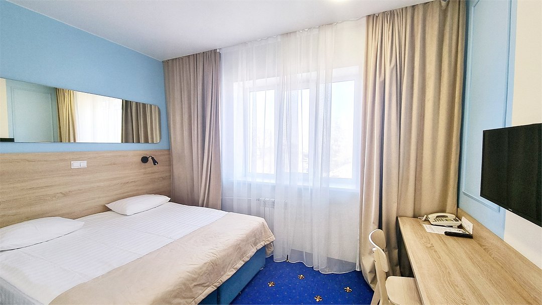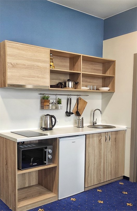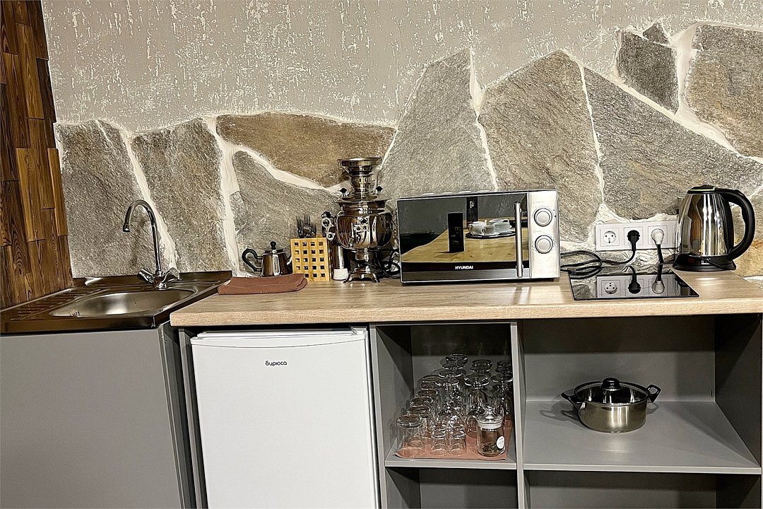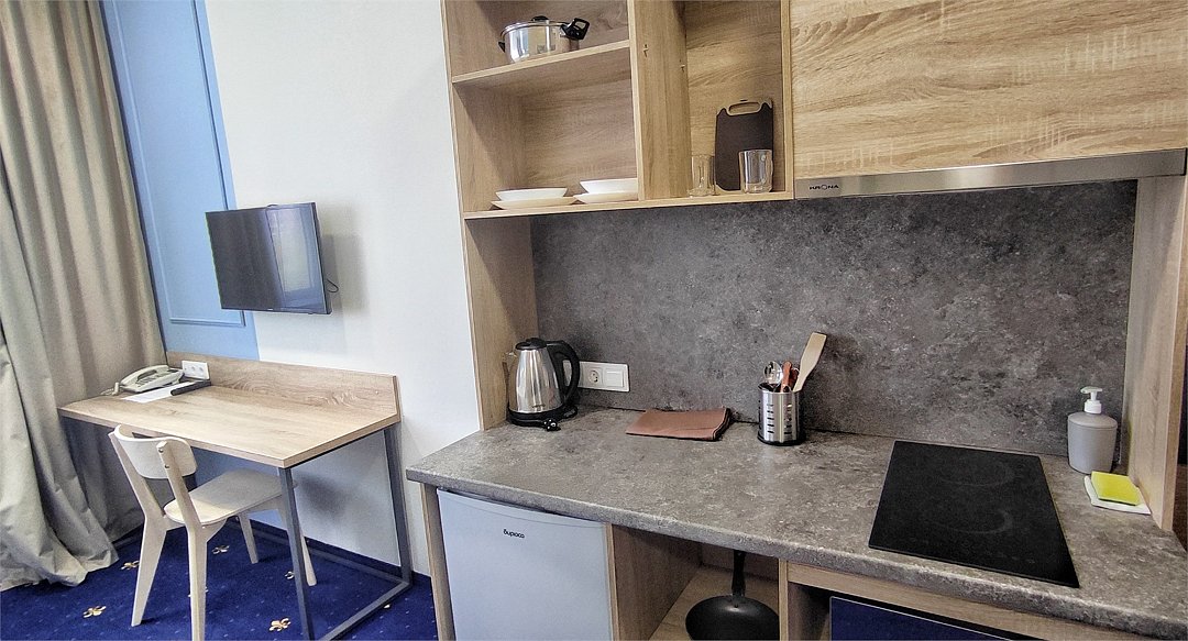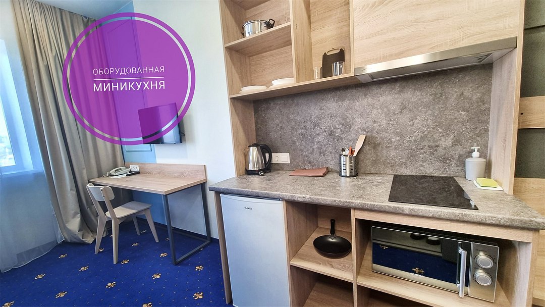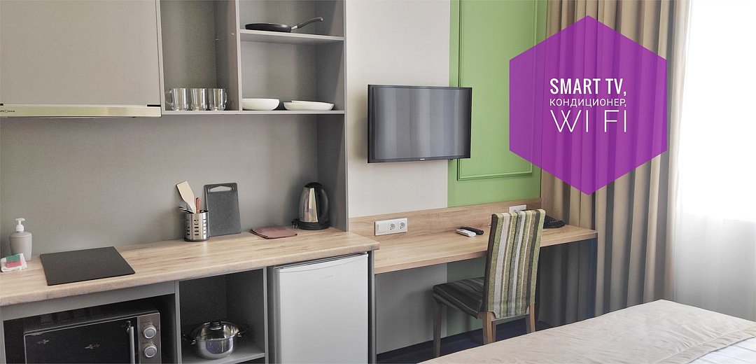 Уютные апартаменты с кухней, огромной комфортной кроватью и собственной ванной комнатой. В номере есть всё необходимое для комфортного проживания. Кухня оборудована холодильником, чайником, посудой для приготовления пищи, столовыми приборами, микроволновой печью, варочной панелью и вытяжкой. Также в номере есть телевизор SMART и Wi-Fi, кондиционер, шторы блэкаут. Для хранения ценных вещей предусмотрен сейф. В номере организовано рабочее пространство. В ванной комнате имеются гигиенические принадлежности, махровые полотенца для рук, для тела и для ног. Возможность забронировать номер с двуспальной кроватью или двумя односпальными кроватями. Идеальный вариант для размещения 1-2 гостей!Услуги и удобства