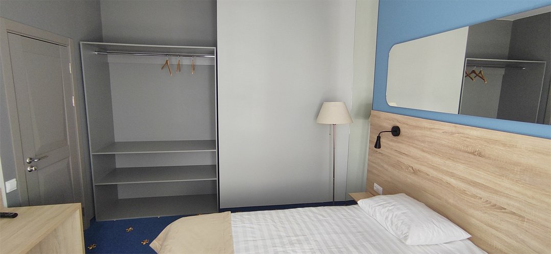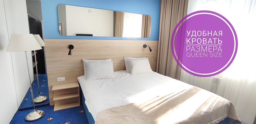 Просторный, уютный и светлый номер с удобной большой двуспальной кроватью, размера KING SIZE или двумя раздельными кроватями на Ваш выбор. Также есть раскладной двухместный диван, что позволяет разместиться в номере до 4-х человек. В апартаментах обустроенная мини кухня, на которой есть всё необходимое для приготовления еды (посуда, холодильник, микроволновая печь, чайник, варочная панель, вытяжка, столовые приборы). Собственная ванная комната с гигиеническими принадлежностями на каждого гостя, а также махровые полотенца для рук, для тела и для ног. Предусмотрен телевизор SMART и Wi-Fi, кондиционер, шторы блэкаут, а для хранения ценных вещей имеется сейф. В номере организовано рабочее пространство. Есть возможность разместить в номере кроватку для малышей.Услуги и удобства