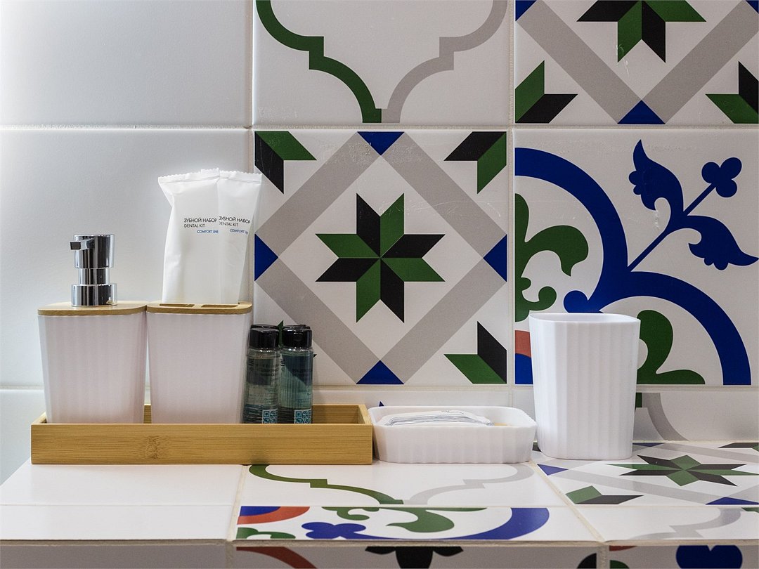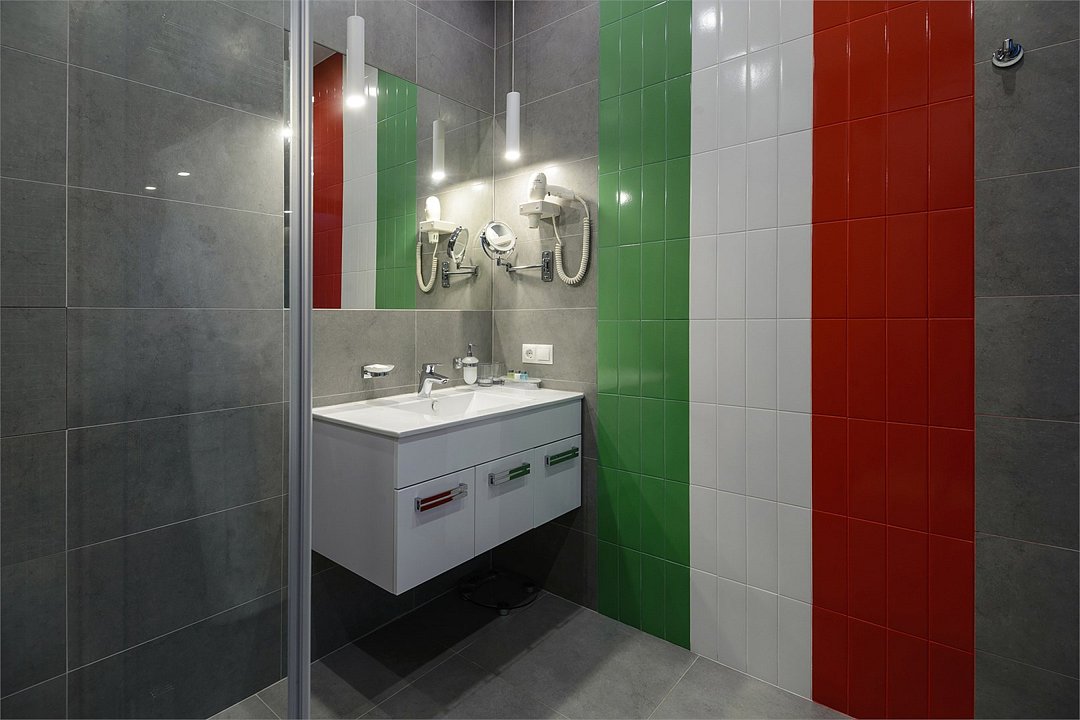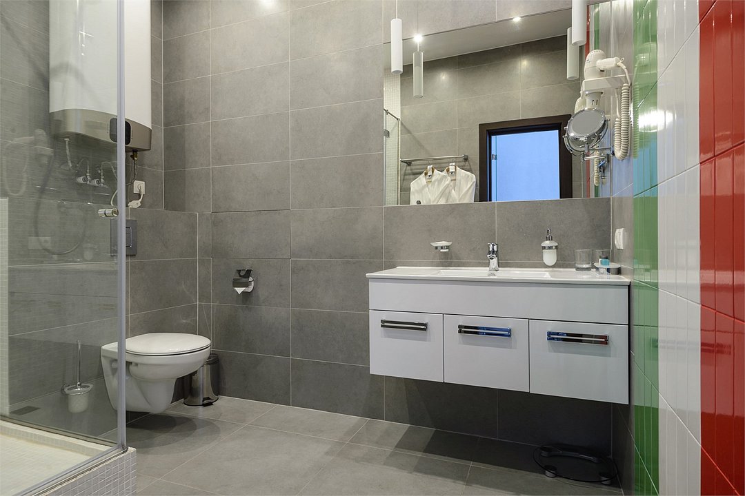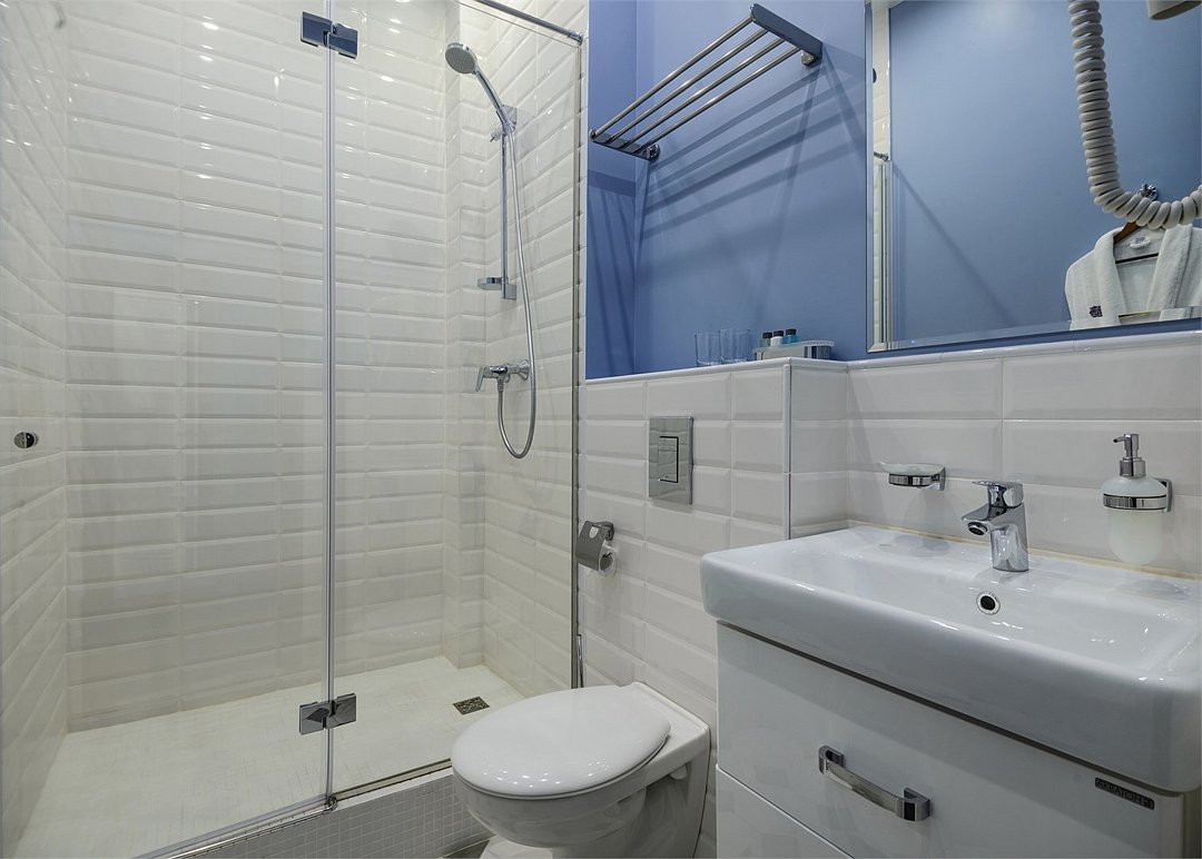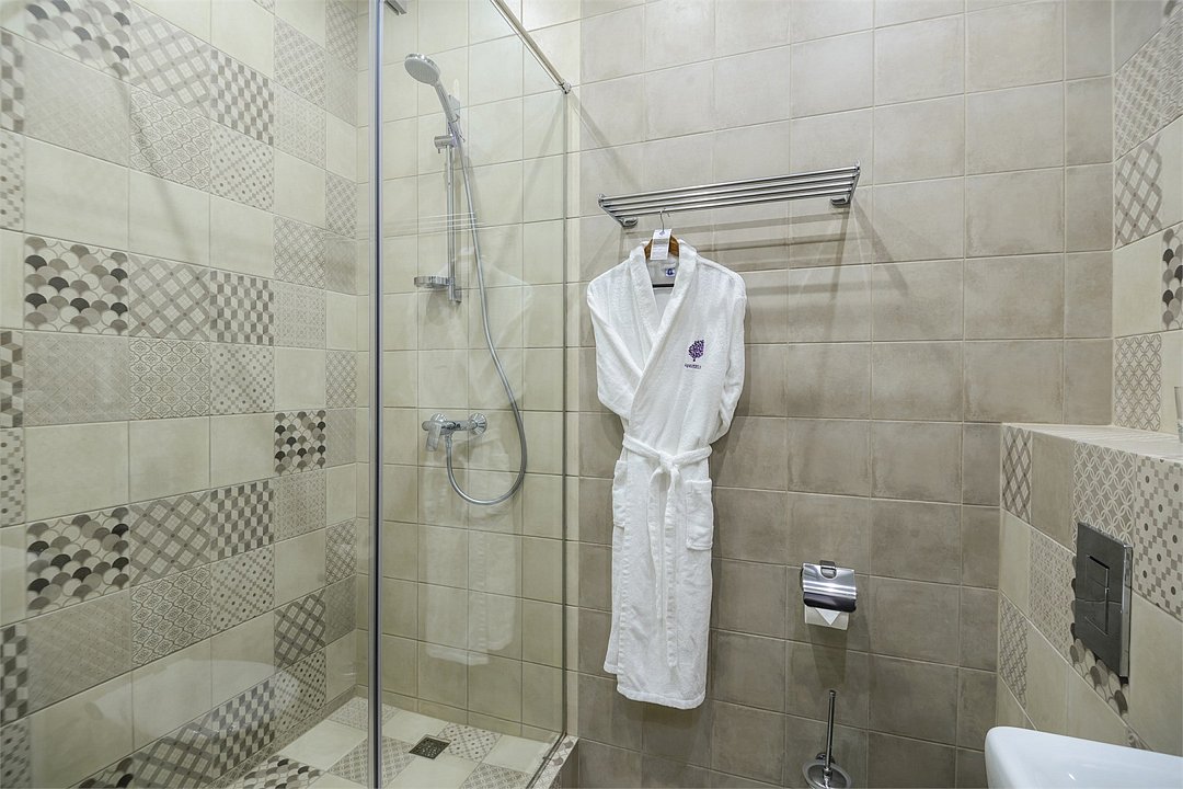 - Каждый апартамент оснащены ванной комнатой с душем, телевизором, кондиционером, сейфом, чайником и прочими удобствами.
