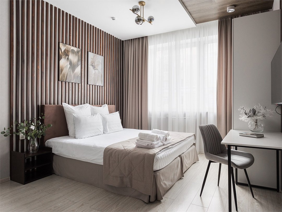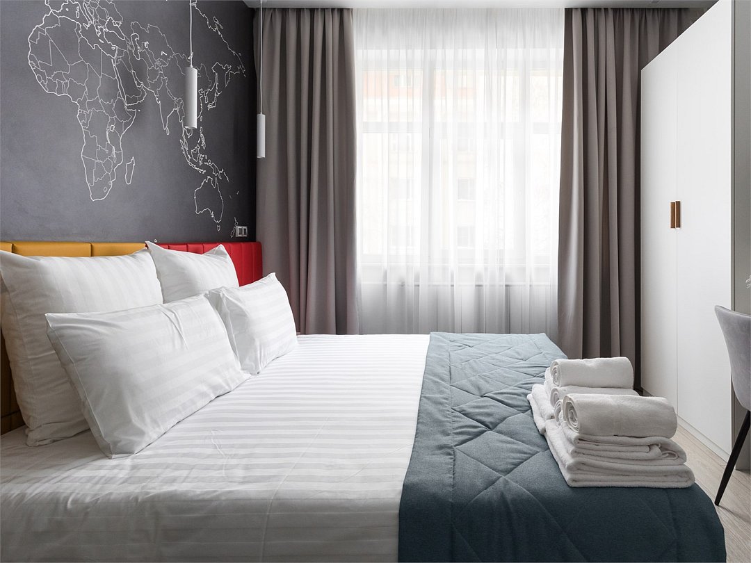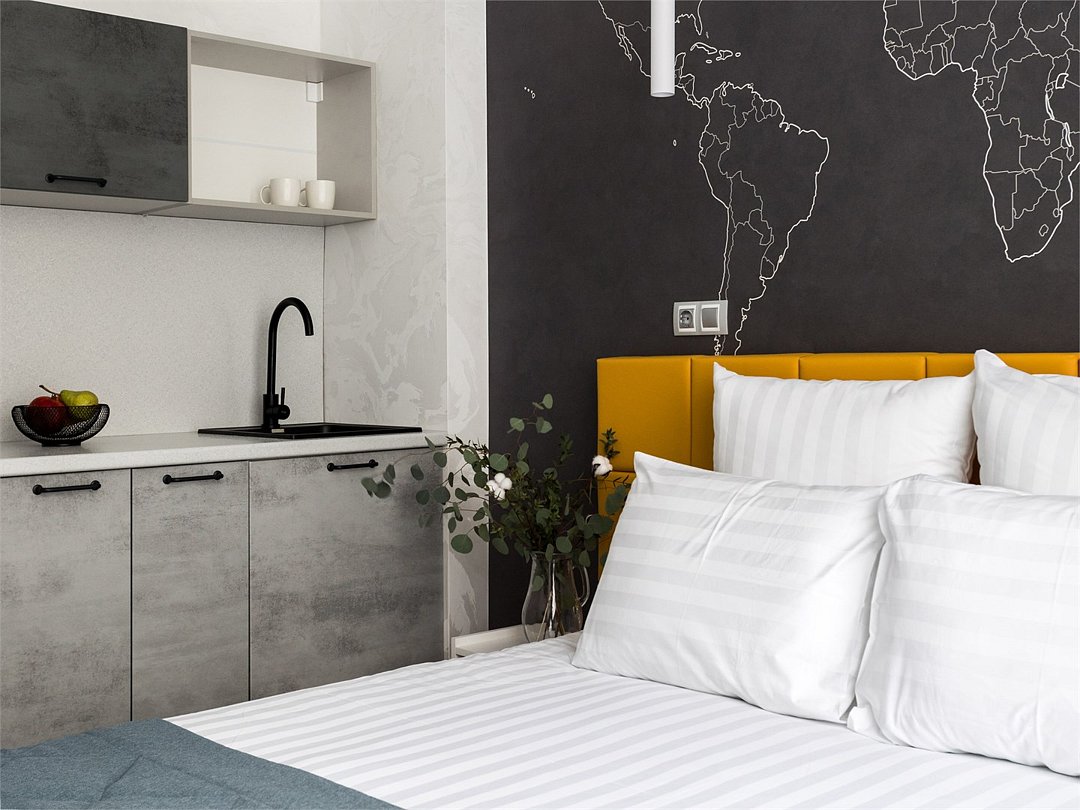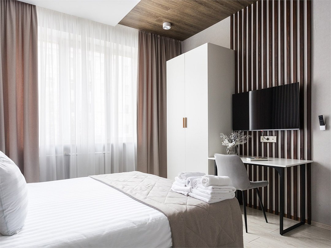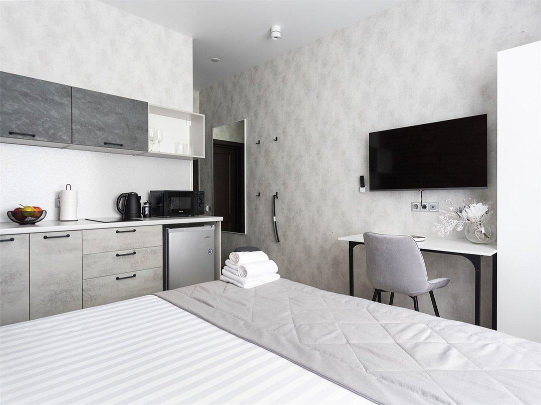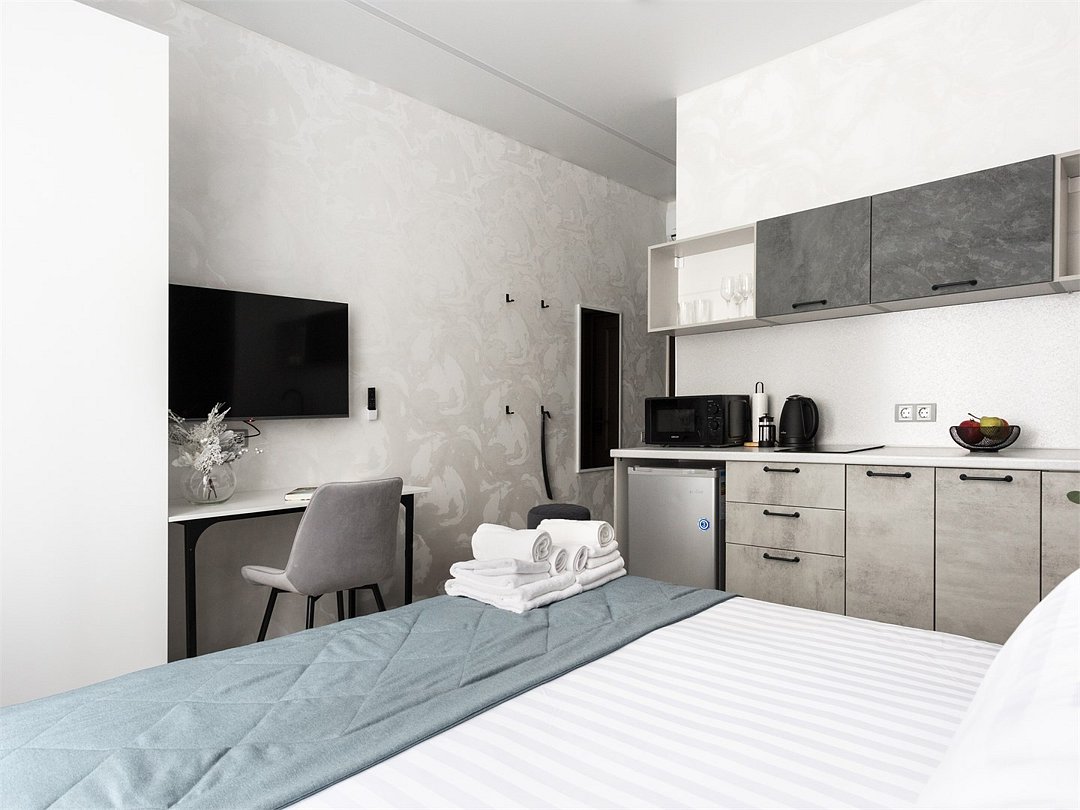 Апартаменты-студия «GEOMETRY» предлагают современное и функциональное пространство, созданное для комфортного проживания одного или двух человек. Здесь гармонично сочетаются минимализм и уют, создавая приятную атмосферу для отдыха и работы.Услуги и удобства