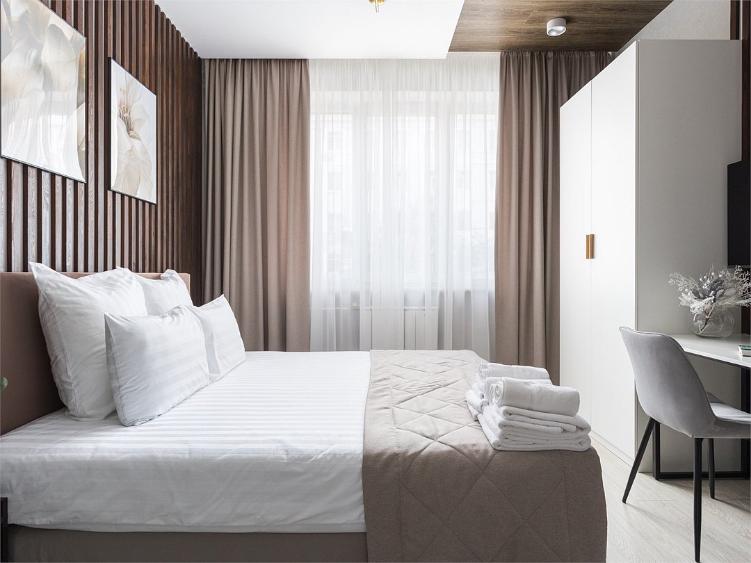 Представьте себе апартаменты, выполненные в уютном кофейном стиле, вдохновленный ароматами свежезаваренного эспрессо и элегантностью латте-арта. Этот интерьер сразу же погружает гостей в атмосферу спокойствия и комфорта, идеально подходящую для отдыха после насыщенного дня.Услуги и удобства