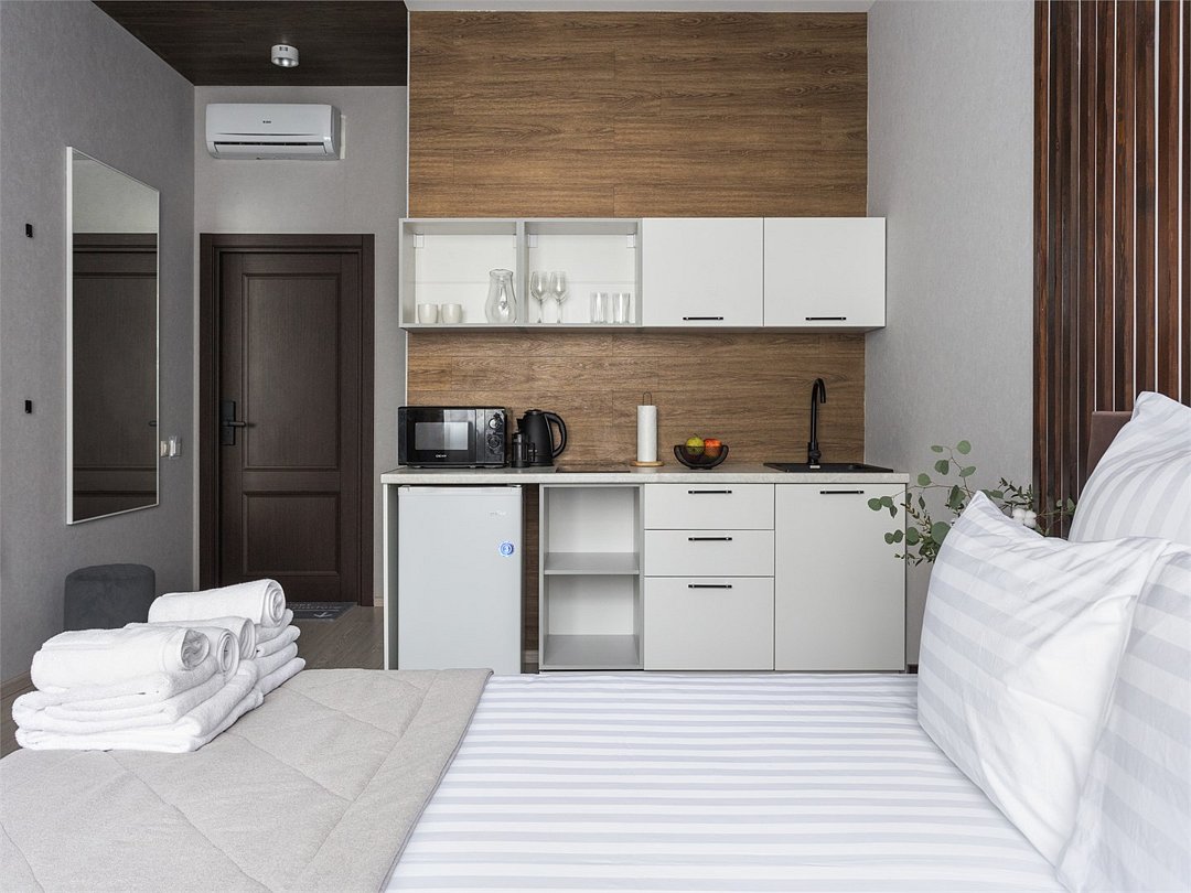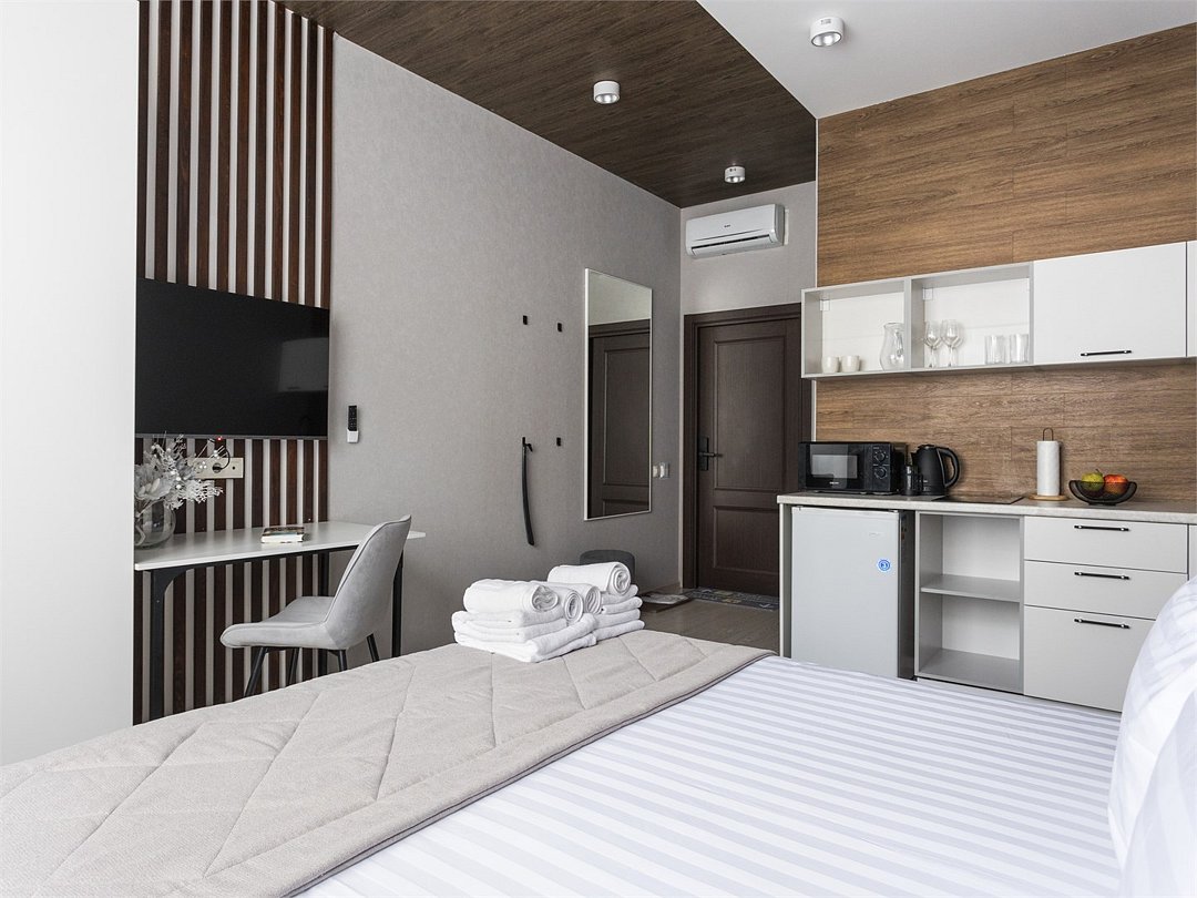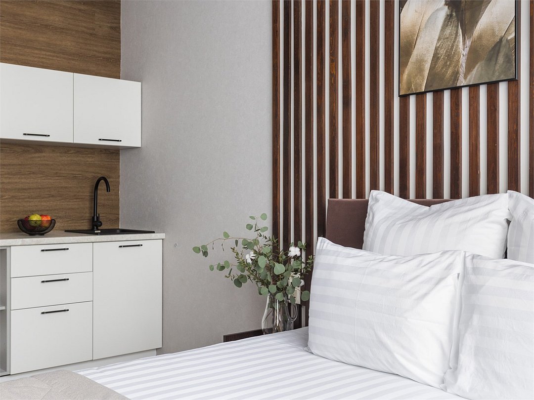 Апартаменты-студия Wood созданы для тех, кто ценит комфорт и уют в городской среде. Пространство этой студии продумано до мельчайших деталей, чтобы обеспечить максимальное удобство и функциональность.Услуги и удобства