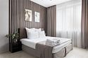 телевизор, Wi-Fi, IP-телефон, кондиционер, фен, душевая кабина, теплый пол, халаты, банные полотенца, тапочки, гигиенические средства, косметические средства, двуспальная кровать, гипоаллергенное белье, ортопедический матрас, шкаф для одежды, зеркало, мини-бар, обслуживание номеров, сейф, косметическое зеркалоВ аппартаментах