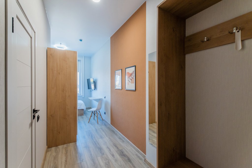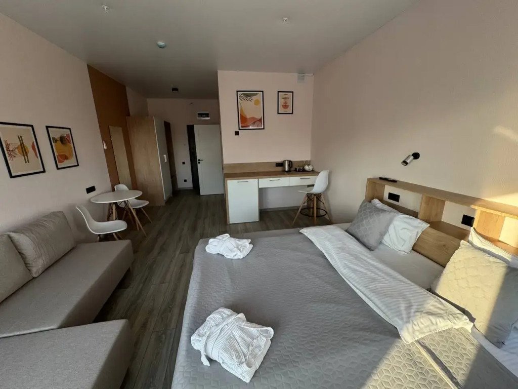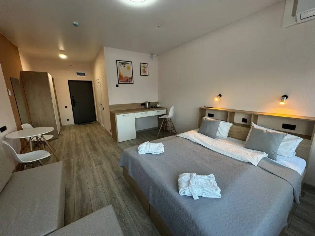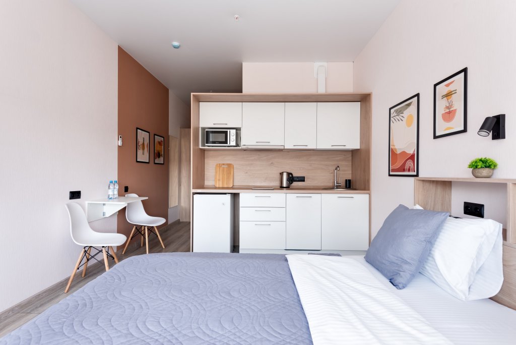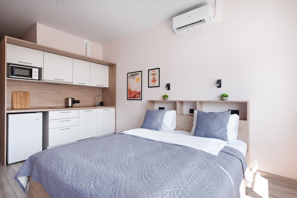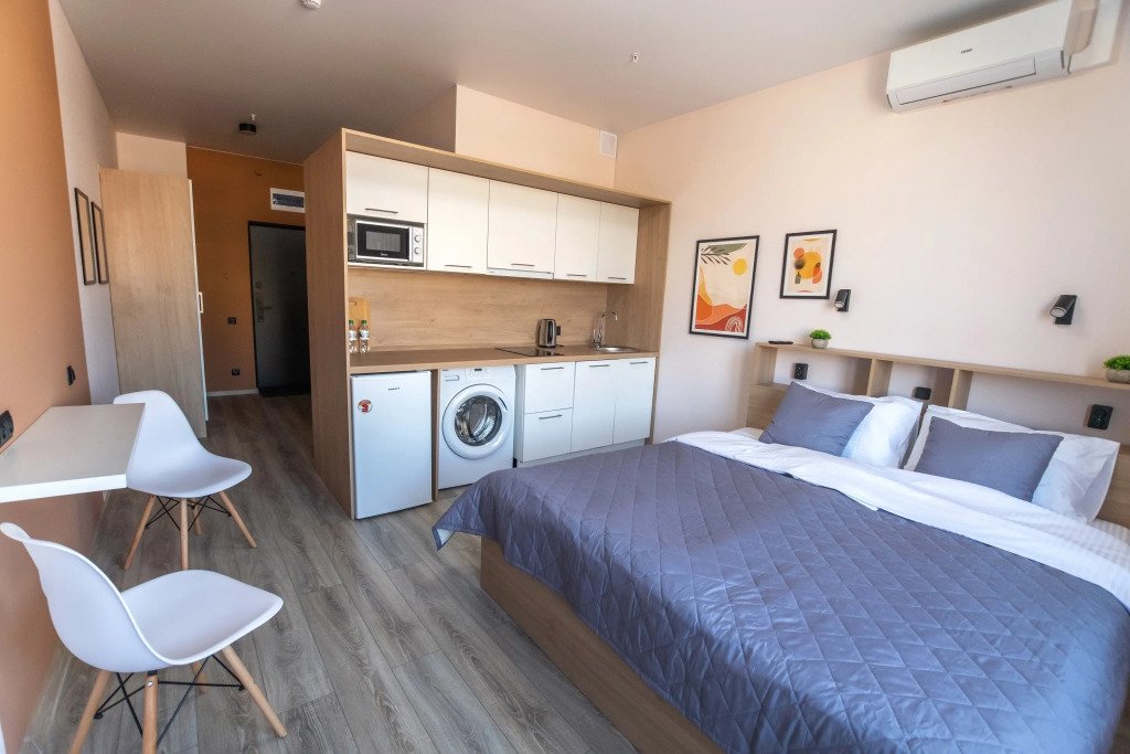 В комплексе апартаментов представлены номера повышенной комфортности: «Одноместный номер», Студия «Стандарт», Студия «Стандарт +». Во всех номерах есть полноценные кухонные зоны с наличием необходимой бытовой техники и приборов, спальные места, оборудованные ортопедическими матрасами с независимыми пружинными механизмами и высококачественным постельным бельём, полный набор бытовой техники и наборами для душа. Номера оборудованы системой звукоизоляции и светонепроницаемыми занавесками.