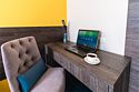 телевизор, Wi-Fi, телефон, кондиционер, система климат-контроля, светильник, настольные лампы, фен, будильник, система безопасности, электронные замки, ванная комната, ванна, банные принадлежности, халаты, банные полотенца, тапочки, гигиенические средства, косметические средства, кровать «King size», двуспальная кровать, гипоаллергенное белье, ортопедический матрас, шкаф для одежды, вешалки, журнальный столик, письменный стол, багажная тумба, зеркало, мини-бар, письменные принадлежности, чайный набор, обслуживание номеров, чайник, унитаз, раковина, косметическое зеркало, питьевая вода, ковровое покрытие, отопление, вид на город, вид на реку, кресло, вид во двор, стаканы, кофейный столик, стул, стол, туалетные средства, сплит-система, цифровое тв, внутренний телефон, мини-холодильник, гостиничная парфюмерия, телевизор со Smart TV, номер для некурящих, без питомцевВ гостиничном номере