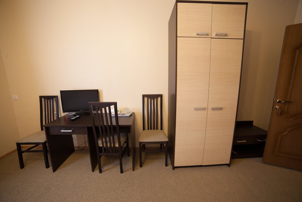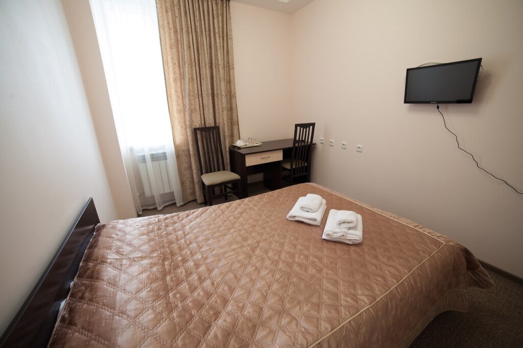 Площадь стандартного номера — 14.0 кв.м. В номере вы найдёте телевизор. Оснащение зависит от выбранной категории номера.