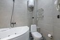 Номера категории “Апартамент четырехместный” отличаются друг от друга, так как ремонт и оснащение не стандартизировано в данной категории номеров. На фото представлен один из номеров для общего представления. Номер вмещает до четырех гостей, оборудован двуспальной кроватью и диваном, телевизором с ТВ-приставкой, набором постельного белья, а также стиральной машиной и гладильными принадлежностями. В ванной комнате имеются средства личной гигиены, ванна или душевая кабина, туалет, фен и полотенца. Для самостоятельного приготовления еды и напитков предусмотрена собственная кухня, где установлены электрический чайник и микроволновая печь, плита и холодильник, обеденный стол со стульями и кухонными приборами.Услуги и удобства