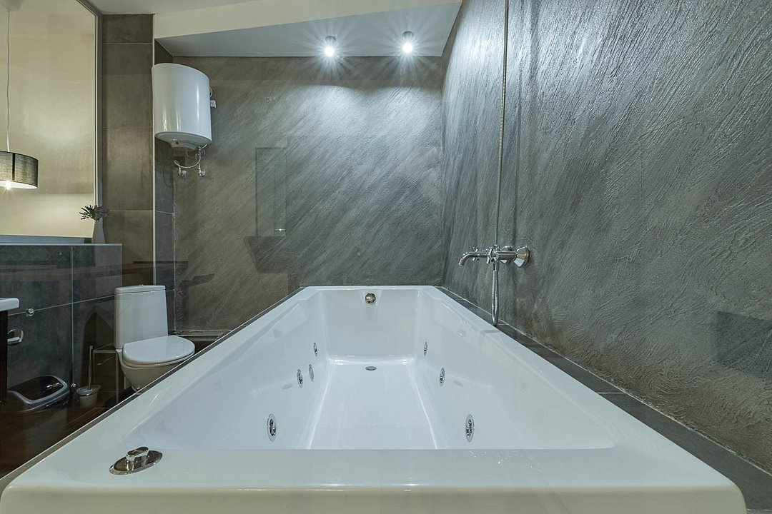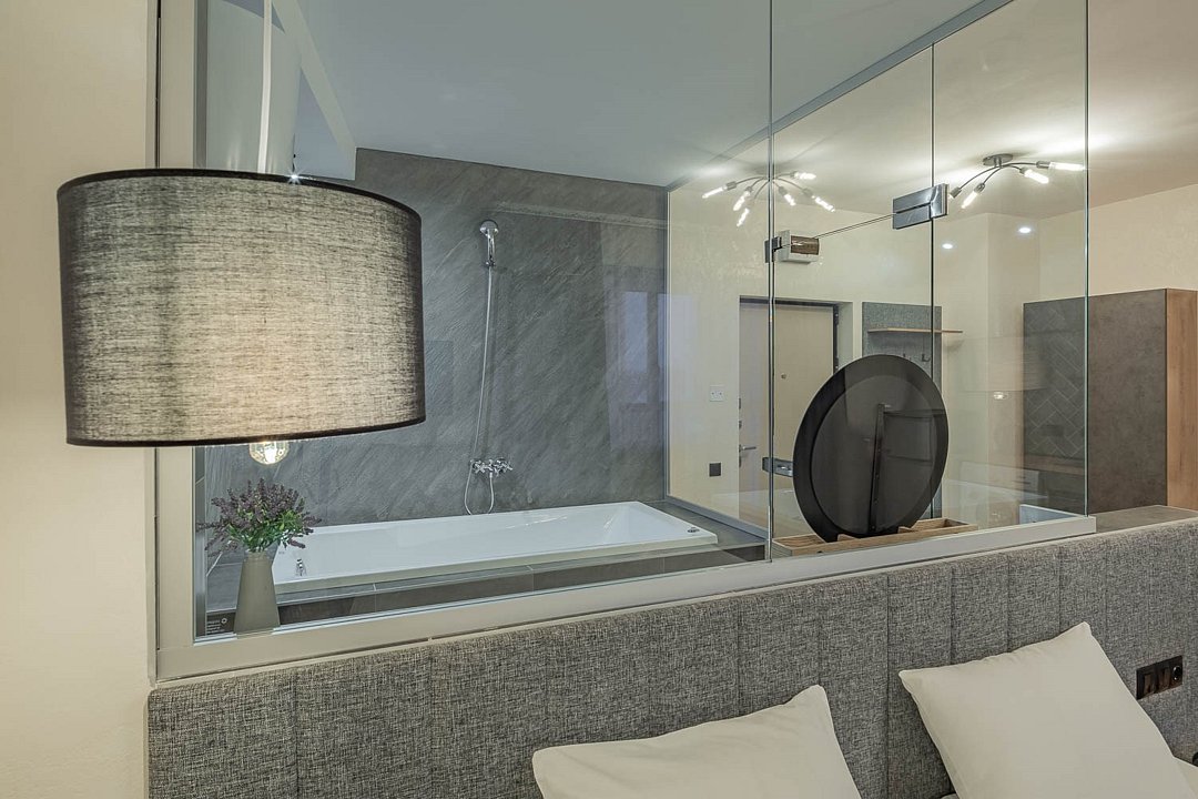 Номер вмещает до четырёх гостей, оборудован двуспальной кроватью и двухместным диваном, телевизором с ТВ-приставкой, кондиционером, набором постельного белья, а также стиральной машиной и гладильными принадлежностями. В ванной комнате имеются средства личной гигиены, джакузи, туалет, фен и полотенца, а также бойлер для нагрева воды в период отсутствия горячей воды. Для самостоятельного приготовления еды и напитков предусмотрена собственная кухня, где установлены электрический чайник и микроволновая печь, плита и холодильник, обеденный стол со стульями и кухонными приборами.Услуги и удобства