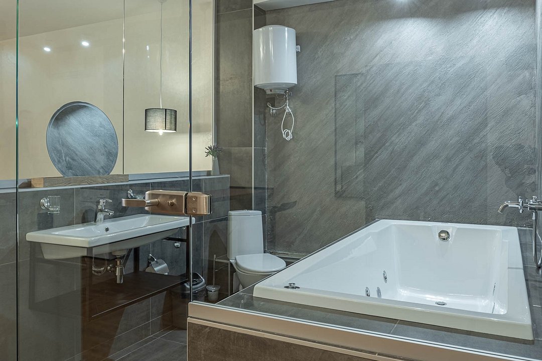 Wi-Fi, интернет, холодильник, кондиционер, фен, микроволновая печь, утюг, гидромассажная ванна, гигиенические средства, балкон с красивым видом, кровать «Queen size», гладильная доска, стулья, шкаф для одежды, вешалки, обеденный стол, зеркало, кухня, набор посуды, стиральная машина, чайник, унитаз, раковина, отопление, вид на реку, кухонная посуда, стаканы, столовые приборы, туалетные средства, туалет, цифровое тв, раскладной диван, телевизор с плоским экраном, номер для некурящих, usb портВ номере