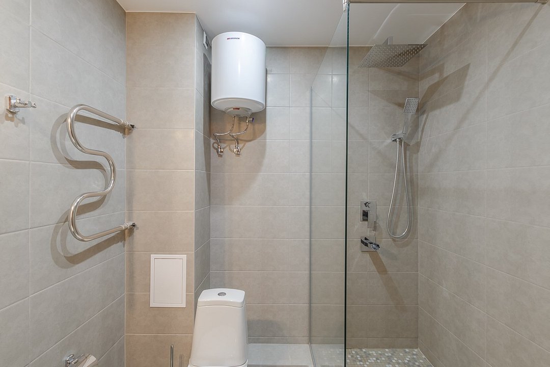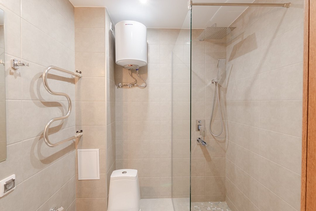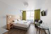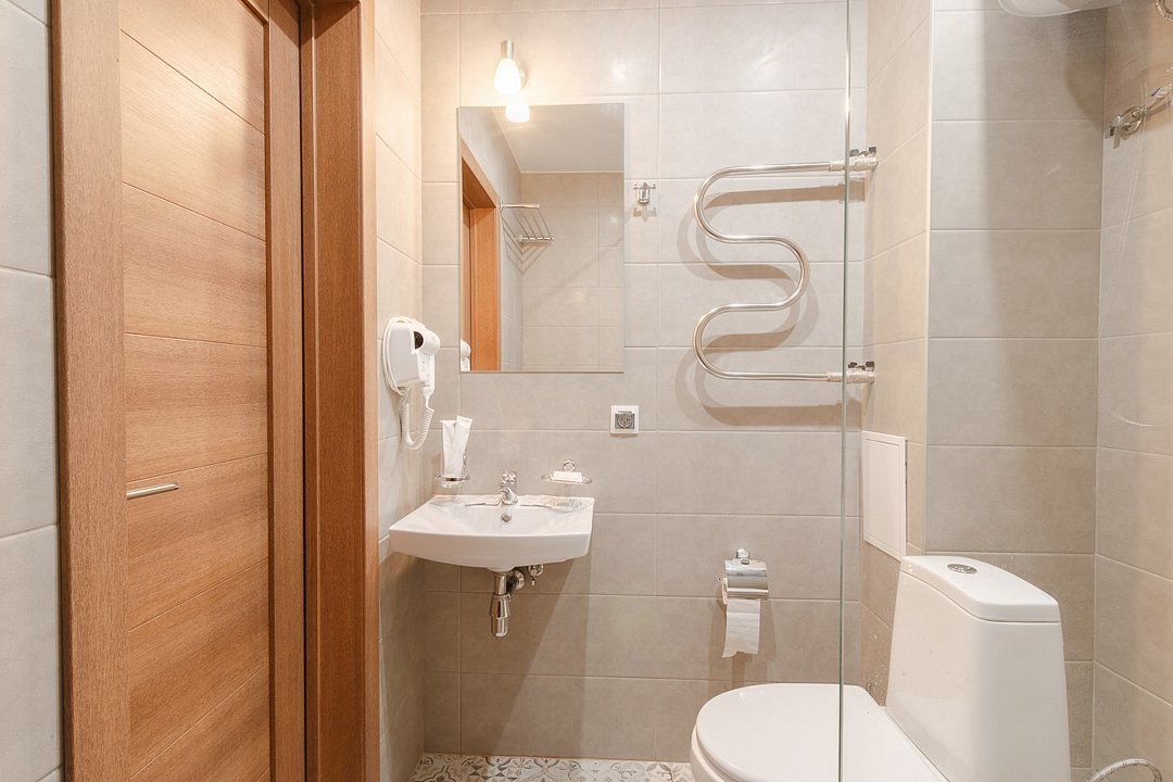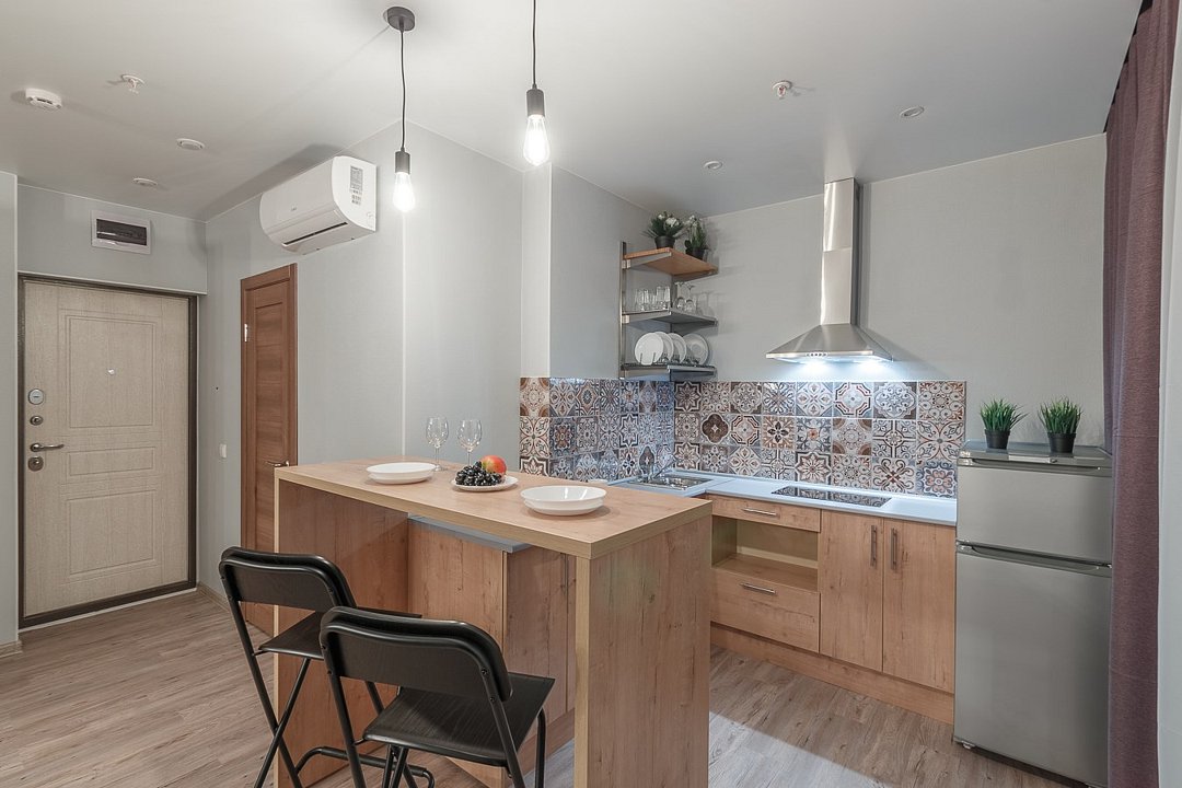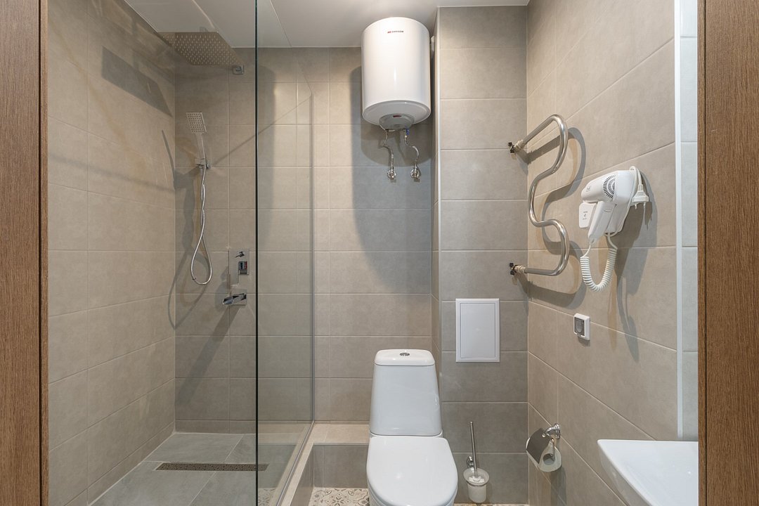 Wi-Fi, интернет, холодильник, кондиционер, светильник, фен, плита для приготовления пищи, микроволновая печь, утюг, ванная комната, душевая кабина, санузел, водонагреватель, гигиенические средства, косметические средства, двуспальная кровать, гладильная доска, тумбы, стулья, шкаф для одежды, вешалки, обеденный стол, зеркало, кухня, чайный набор, набор посуды, стиральная машина, чайник, унитаз, раковина, отопление, душ, вид на город, кухонная посуда, стаканы, кухонная утварь, столовые приборы, туалетные средства, туалет, цифровое тв, телевизор с плоским экраном, usb порт, морозильная камера, уборка номера, набор для приготовления чая и кофе, вешалки-плечикиВ номере