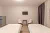 Номер вмещает до трёх гостей, оборудован двумя односпальными кроватями и одноместным диваном, телевизором с ТВ-приставкой, кондиционером, набором постельного белья, а также стиральной машиной и гладильными принадлежностями. В ванной комнате имеются средства личной гигиены, душевая кабина, туалет, фен и полотенца, а также бойлер для нагрева воды в период отсутствия горячей воды. Для самостоятельного приготовления еды и напитков предусмотрена собственная кухня, где установлены электрический чайник и микроволновая печь, плита и холодильник, обеденный стол со стульями и кухонными приборами.Услуги и удобства