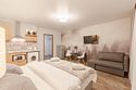 Номер вмещает до четырёх гостей, оборудован двуспальной кроватью и двухместным диваном, телевизором с ТВ-приставкой, кондиционером, набором постельного белья, а также стиральной машиной и гладильными принадлежностями. В ванной комнате имеются средства личной гигиены, ванна или душевая кабина, туалет, фен и полотенца, а также бойлер для нагрева воды в период отсутствия горячей воды. Для самостоятельного приготовления еды и напитков предусмотрена собственная кухня, где установлены электрический чайник и микроволновая печь, плита и холодильник, обеденный стол со стульями и кухонными приборами.Услуги и удобства