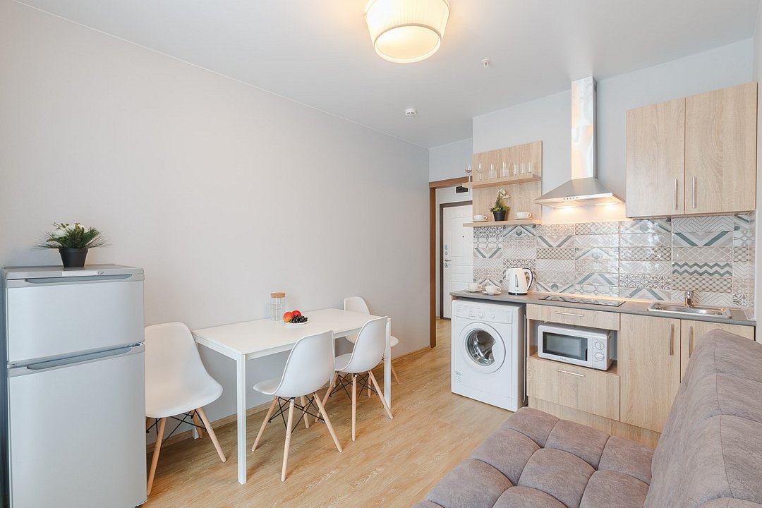 Wi-Fi, интернет, холодильник, фен, плита для приготовления пищи, микроволновая печь, утюг, ванная комната, ванна или душевая кабина, санузел, гигиенические средства, косметические средства, гладильная доска, стулья, шкаф для одежды, вешалки, обеденный стол, кухня, набор посуды, стиральная машина, унитаз, раковина, отопление, вид на город, стаканы, столовые приборы, туалетные средства, туалет, цифровое тв, диван-кровать, раскладной диван, телевизор с плоским экраном, морозильная камера, уборка номера, набор для приготовления чая и кофе, вешалки-плечикиВ номере