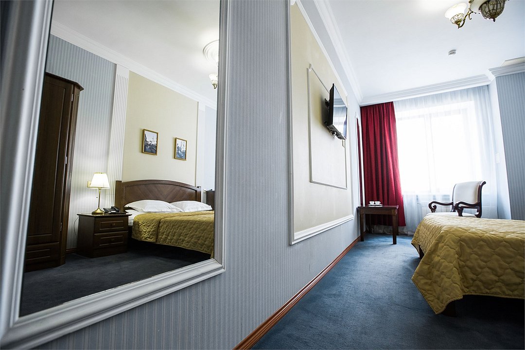 Приглашаем всех гостей Новосибирска в двухместные гостиничные номера с двумя отдельными кроватями. Удобства стандартного двухместного гостиничного номера Ванная комната и туалет — современная сантехника, стильный ремонт, гигиенические принадлежности, халат и тапочки. Холодильник, кондиционер, телевизор и телефон. Автономная система отопления. В просторной, светлой комнате двухместного номера в гостинице «Гостиный Двор» удобно проводить время, работать и отдыхать. Чтобы вашему сну не мешал свет за окном (особенно при ненормированном графике), предусмотрены плотные шторы.Услуги и удобства