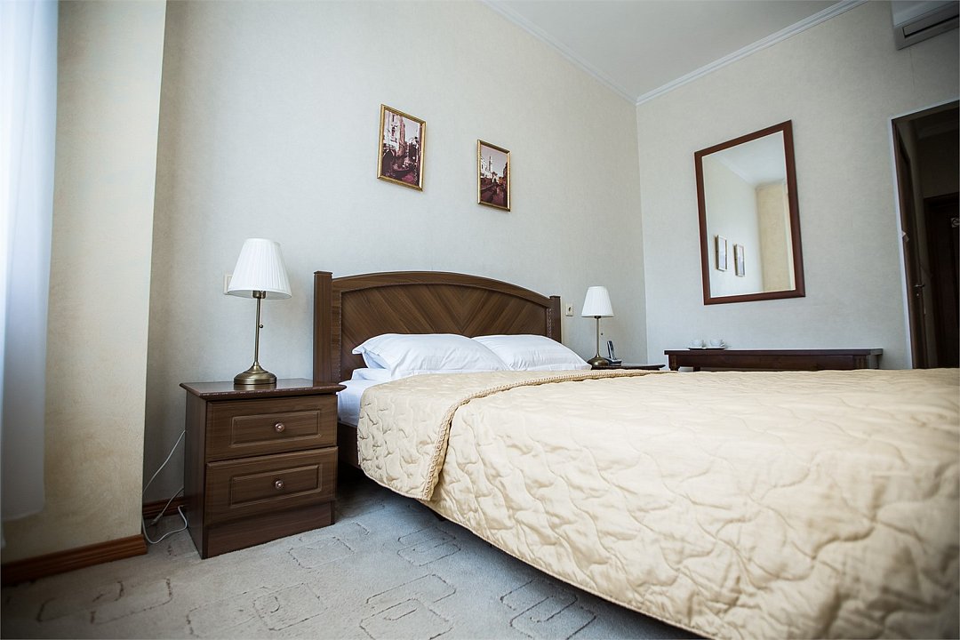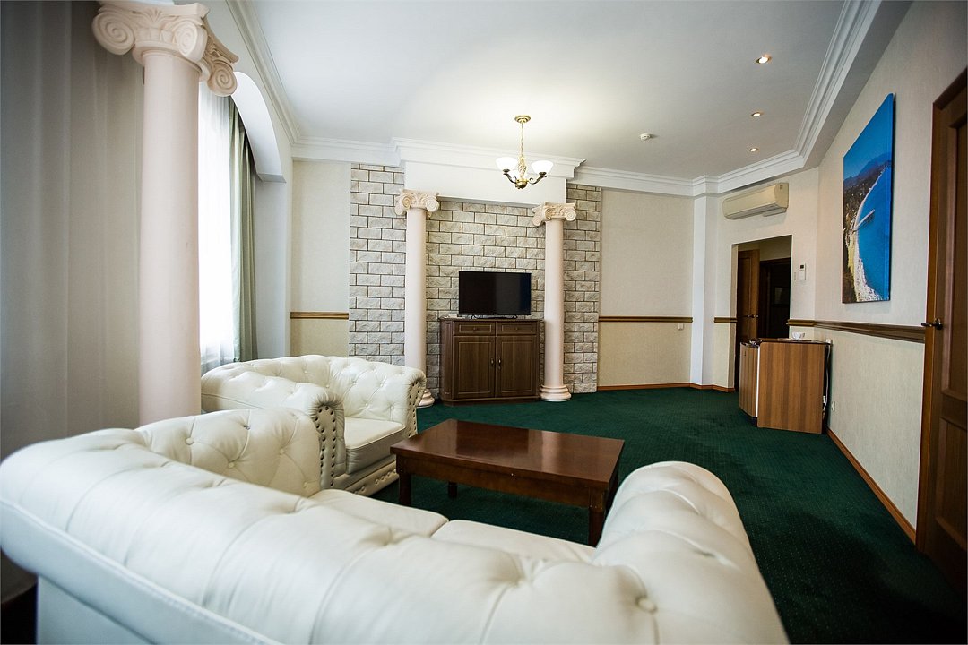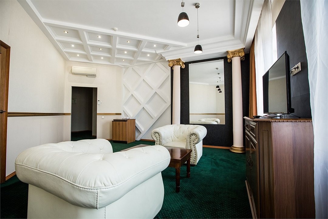 Самый комфортный и самый роскошный номер. Просторные комнаты, отдельная гардеробная, модный ремонт в стиле модерн, современная техника — все для вашего комфорта.Услуги и удобства