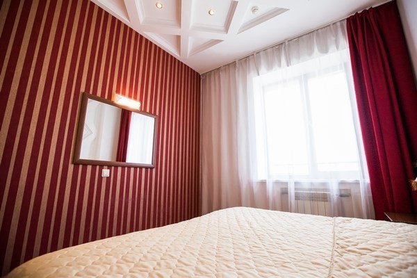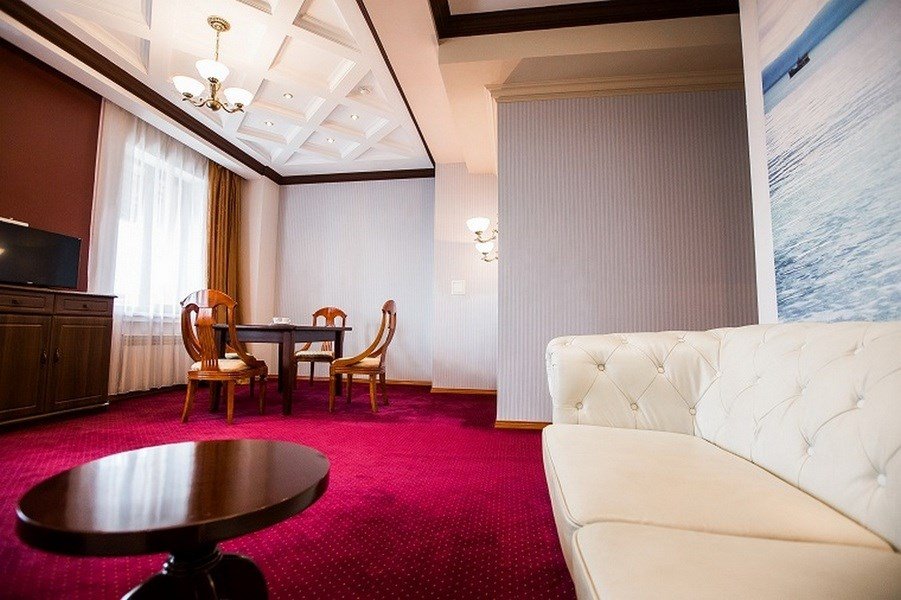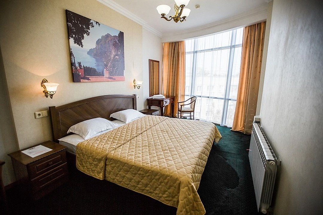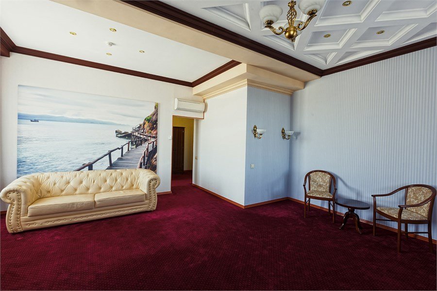 Люкс с панорамным окном двухкомнатный с отдельной гостиной, оборудован телевизором, кондиционером, мини холодильником, имеется гардеробная, санузел с косметическими принадлежностями (шампунь, гель для душа, мыло, зубной набор) Дополнительное спальное место за доплату.Услуги и удобства