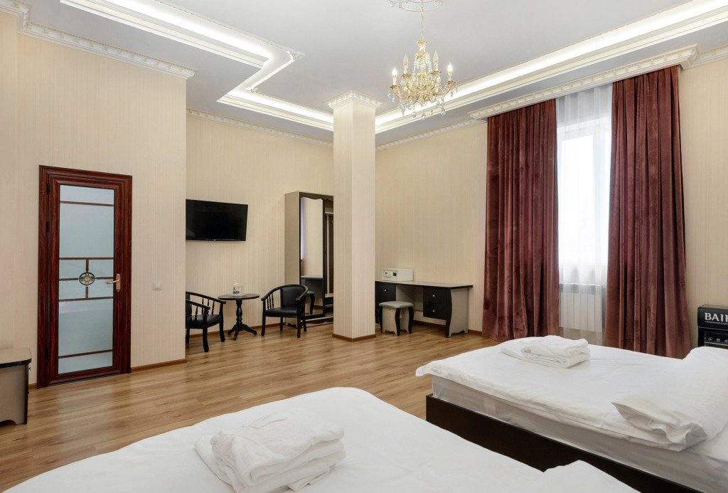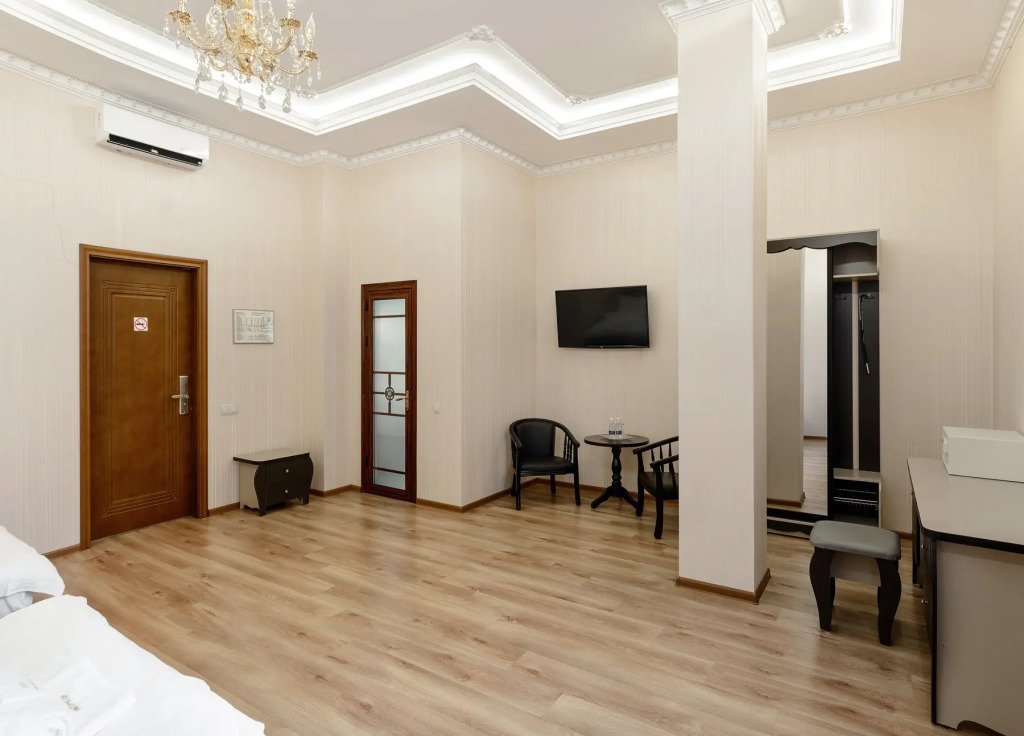 В номере гостей ждут телевизор и халат. Перечисленные услуги есть не во всех номерах.