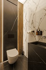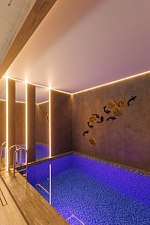 Отдельного внимания заслуживают четыре просторных банных номера с выплывными бассейнами, хаммамами, русской парной и финской сауной. Эти апартаменты созданы для полной приватности и уюта.