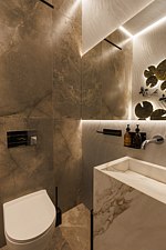 Инфраструктура: тапочки, бассейн, купель, зона отдыха, полотенца, простыни, душ, халатыИгра стихий, в которой природа превращается в искусство. Номер «ROCO» — это настоящая ода земле и воде. Главная стена, напоминающая сруб скалы, придаёт пространству первозданную силу и монументальность, а природные мотивы и ручная работа превращают номер в уникальное место отдыха, где каждая деталь наполнена смыслом. Особое внимание привлекают интерьерные акценты с изображением рыбок и кувшинок, они ненавязчиво сопровождают вас во всех зонах — от бассейна до спальни и санузла. Эти элементы придают интерьеру поэтичность и живость, создавая ощущение, будто вы находитесь в подводном оазисе.