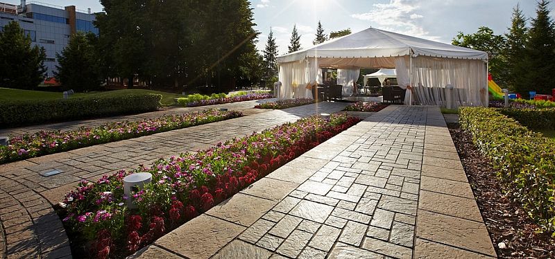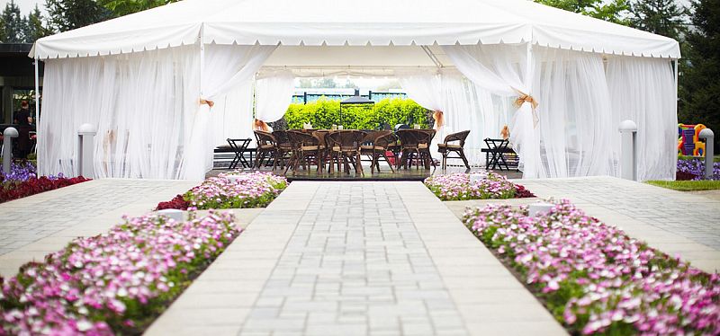 С наступлением погожих деньков растет спрос на проведение банкетов на открытом воздухе. Отель River Park располагает для этих целей замечательной локацией – просторным летним шатром в окружении роскошных цветников, с выходом на парковую зону.