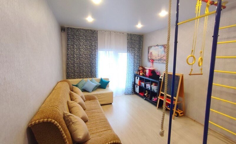 Две спальни, детская комната. На полу ламинат (теплый пол) + еще один туалет.