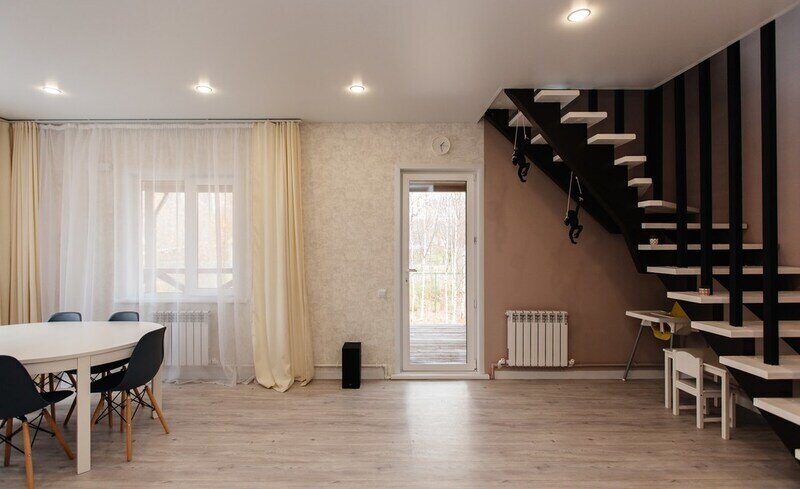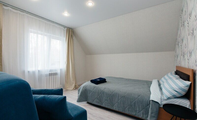 Недалеко от гостевого дома находится живописный лес, который отлично подходит для прогулок и пикников, позволяя полностью насладиться прелестями природы. Также на территории коттеджного поселка имеется детская игровая площадка, где дети смогут развлечься и насладиться играми на свежем воздухе.