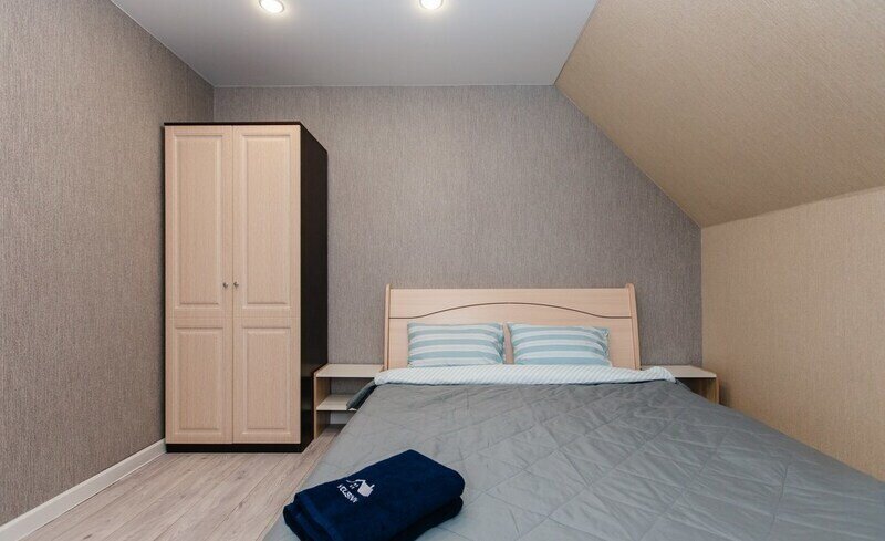 Гостевой дом предлагает размещение до 12 человек. Все комнаты оснащены комфортабельными раскладными диванами и двуспальными кроватями с ортопедическими матрасами, а в ванной комнате имеется душ, а также набор полотенец и туалетных принадлежностей. Просторная кухня укомплектована всей необходимой техникой, включая холодильник, варочную панель, микроволновую печь, чайник, а также полный набор посуды и столовых принадлежностей.