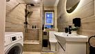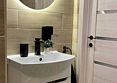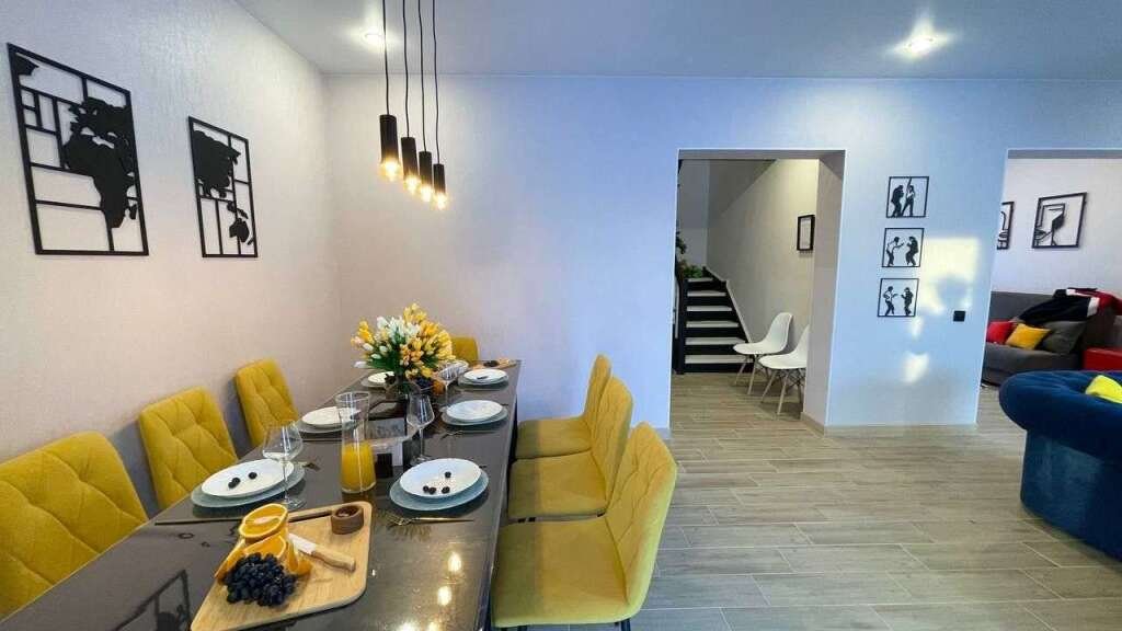 Двухэтажный кирпичный коттедж с террасой вмещает до 6 человек и располагает небольшой закрытой территорией. Внутри находятся 3 комфортные комнаты, гостиная и кухонная зона, оборудованная электроплитой, духовым шкафом и набором посуды. Также предусмотрены 2 санузла с душевыми кабинами и собственная сауна. Среди дополнительных удобств – стиральная и посудомоечная машины, игровая приставка и безлимитный интернет.