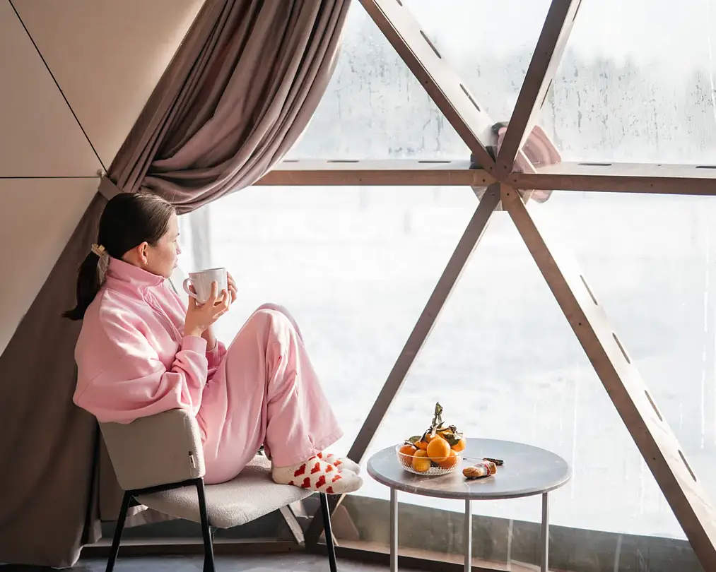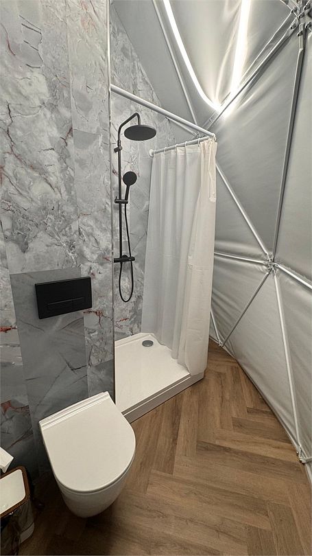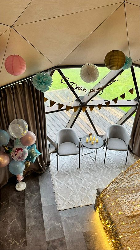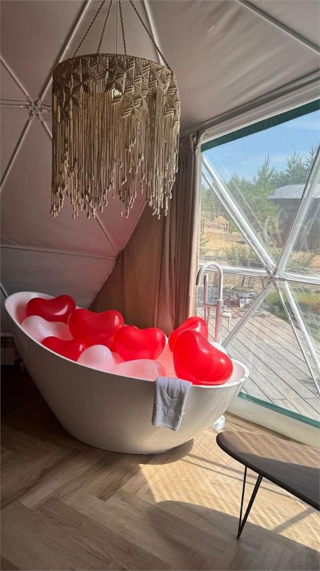 Комфортный дом-сфера площадью 38 м2 с современным дизайном, панорамными окнами. Эксклюзивность нашего дома-сферы заключается в наличии индивидуальной японской бани Фурако. Баня Фурако отличается своей уникальной конструкцией и использованием специальных трав и масел, которые помогают расслабиться и снять усталость.