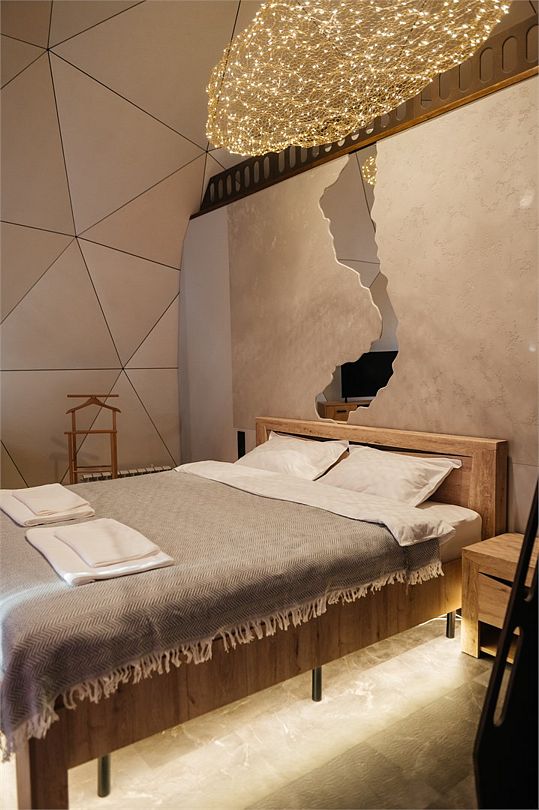 Двуспальная кровать queen size (160*200). Рассчитан на проживание двоих гостей.