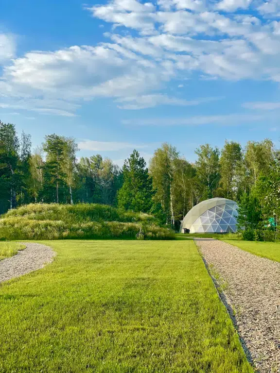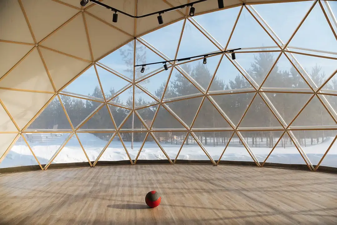 Большой зал-сфера площадью 130 м2 в заповедном лесу для выездных мероприятий на природе — идеальный выбор для проведения встреч, занятий спортом, йогой, проведения ретритов и литературных вечеров.