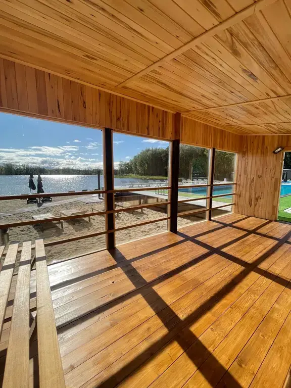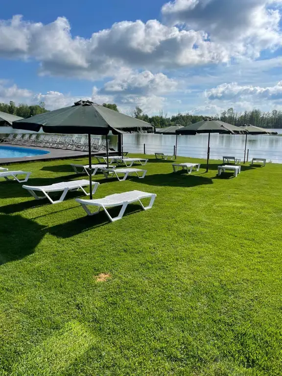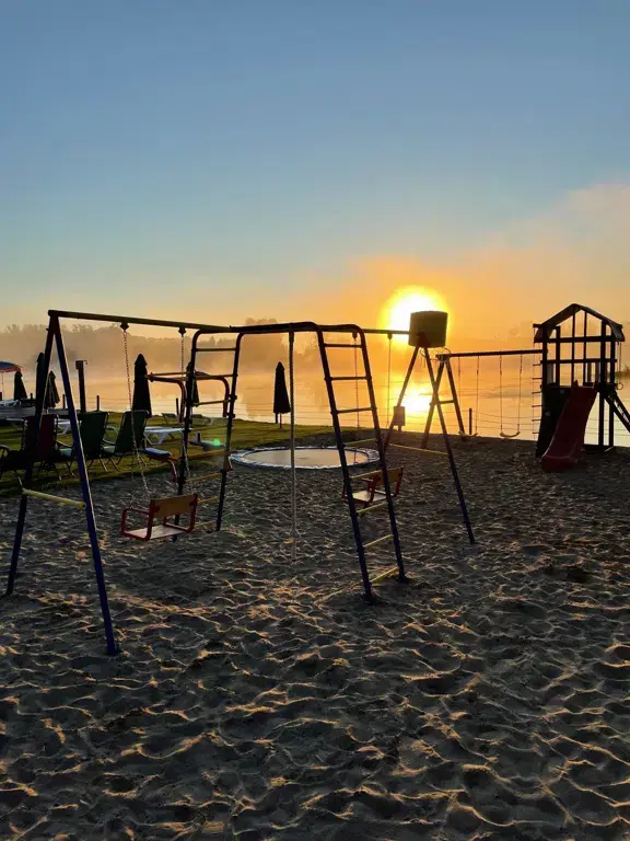 Неподалёку от глэмпинга находится озеро с пляжем, на территории которого есть два взрослых бассейна и детский бассейн, а также множество услуг, часть которых доступна бесплатно для гостей глэмпинга.