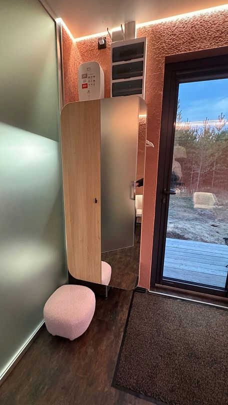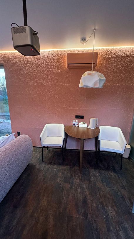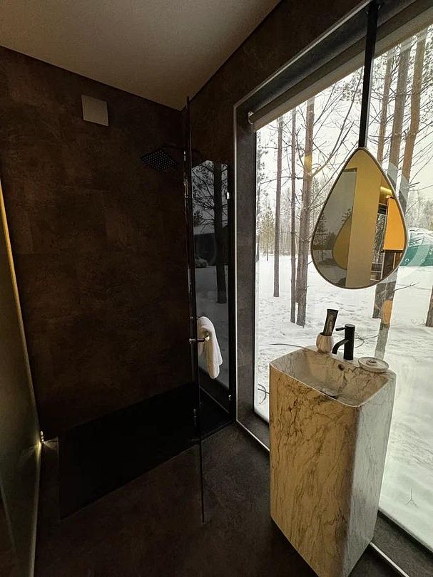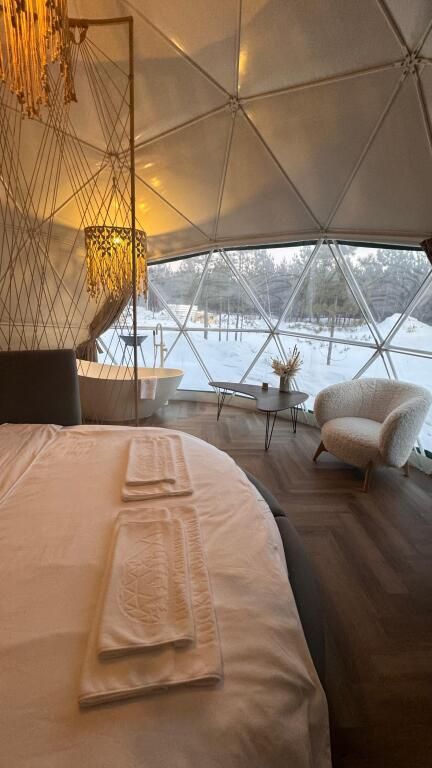 Уникальный дом-сфера площадью 38 м2, выполненный в стильном и современном дизайне. Одной из главных особенностей дома является наличие купели, которая является местом, где Вы сможете расслабиться и насладиться удивительными ощущениями тепла и приятного аромата. Купель оснащена всем необходимым оборудованием, что позволяет нашим гостям в полной мере насладиться пребыванием в ней.