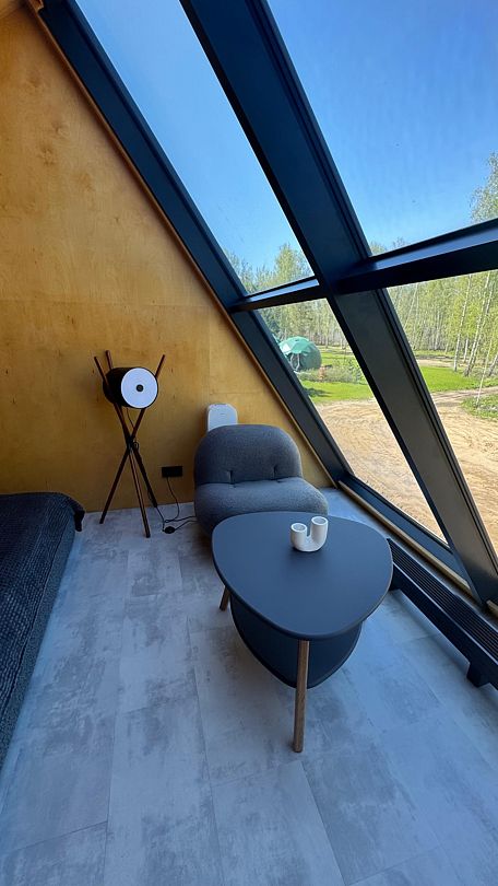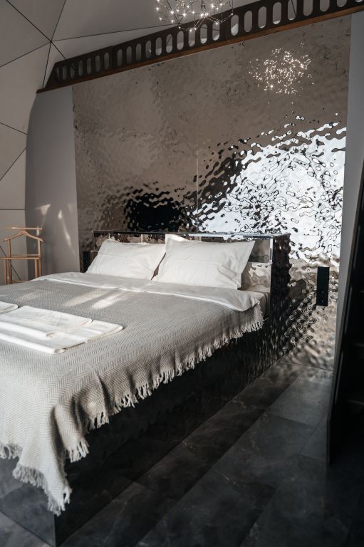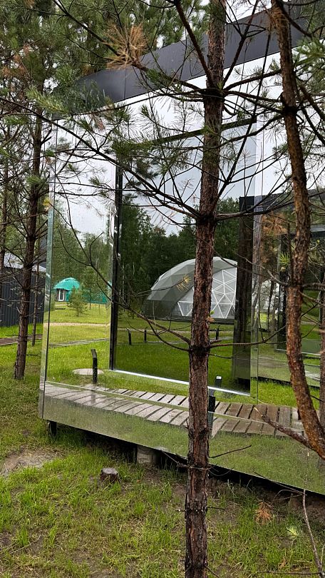 Зеркальный домик с красивым видом в спокойном дизайне, располагающем к отдыху. Двуспальная кровать queen size (160*200). Рассчитан на проживание двоих гостей.