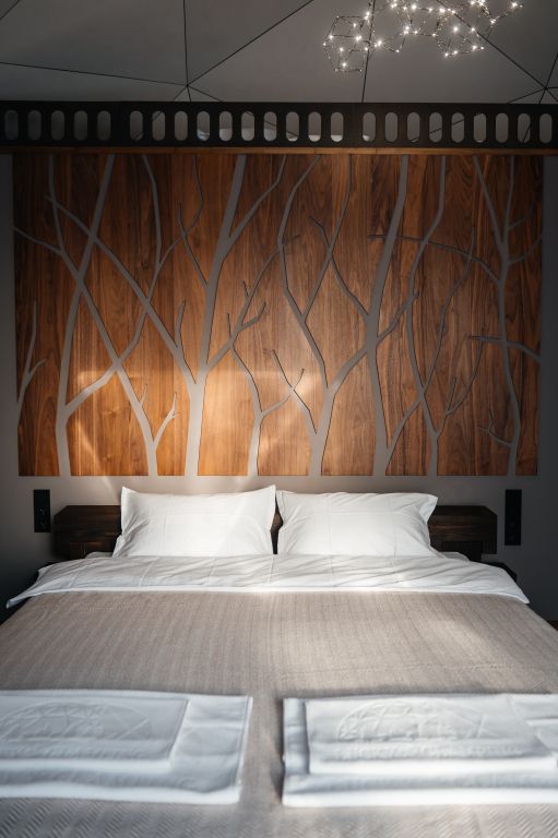 Зеркальный домик снаружи и в природном стиле Green внутри: с красивым видом и панорамными окнами. Двуспальная кровать queen size (160*200). Рассчитан на проживание двоих гостей.