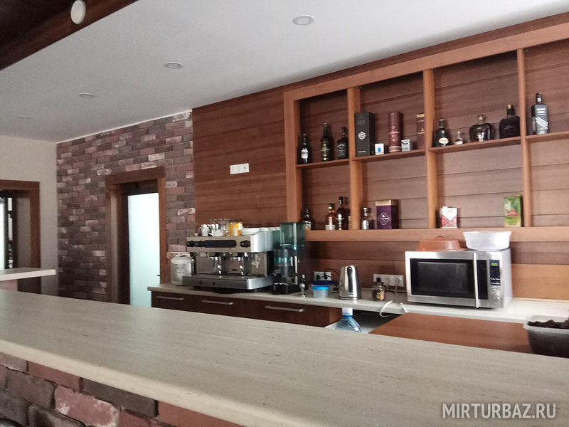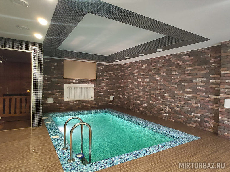 Бассейн с подогревом позволяет настроить температуру комфортную именно для вас. В просторной зоне отдыха можно расслабится после парилки в удобных креслах. В кухонной зоне есть все что нужно, чтобы накрыть на стол: чайник, микроволновая печь, вкусный травяной чай, большой стол и скамейки, холодильник. Так же рядом с кухонной зоной есть телевизор и музыкальный центр.