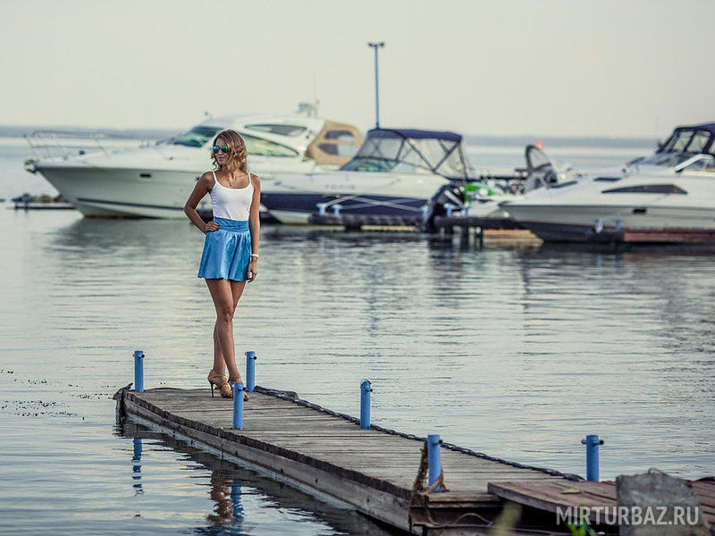 Есть свой собственный пляж с пристанью и услуги по стоянке яхт, катеров, водных мотоциклов.