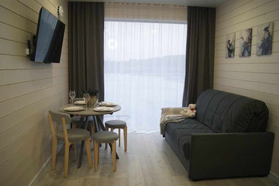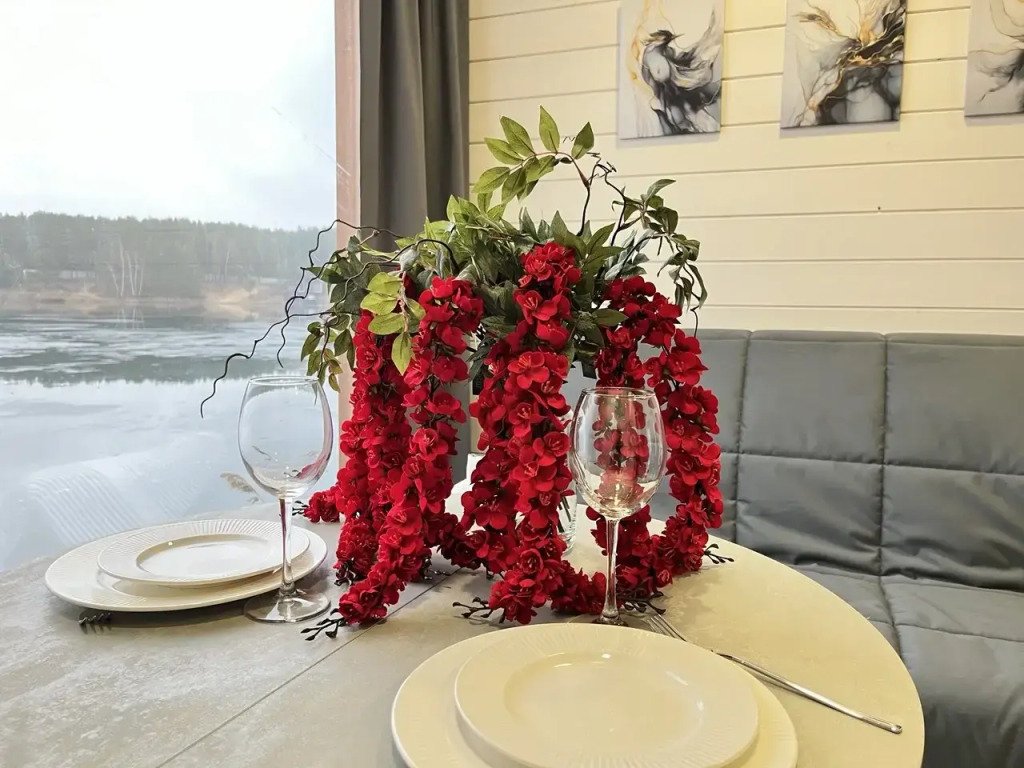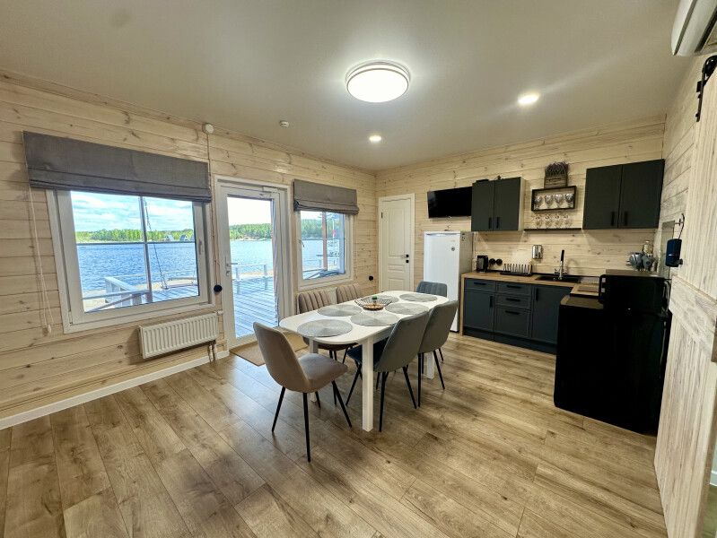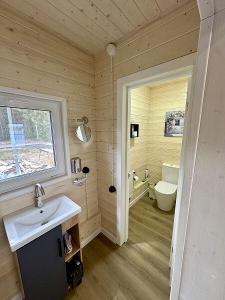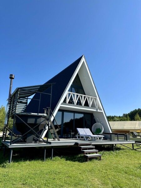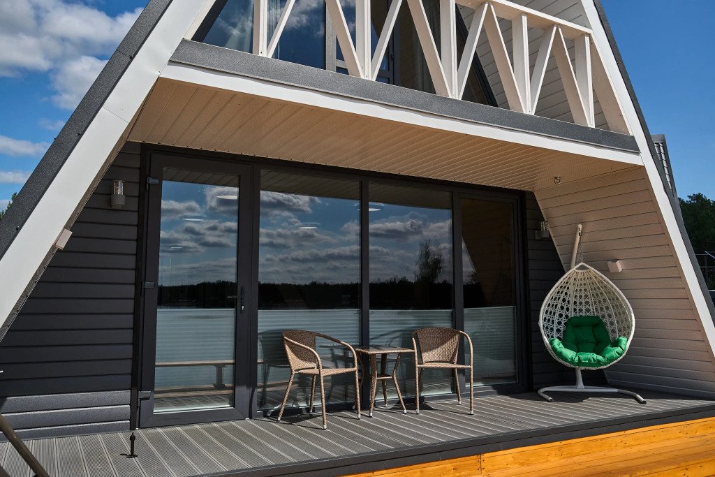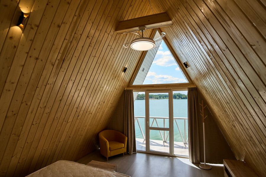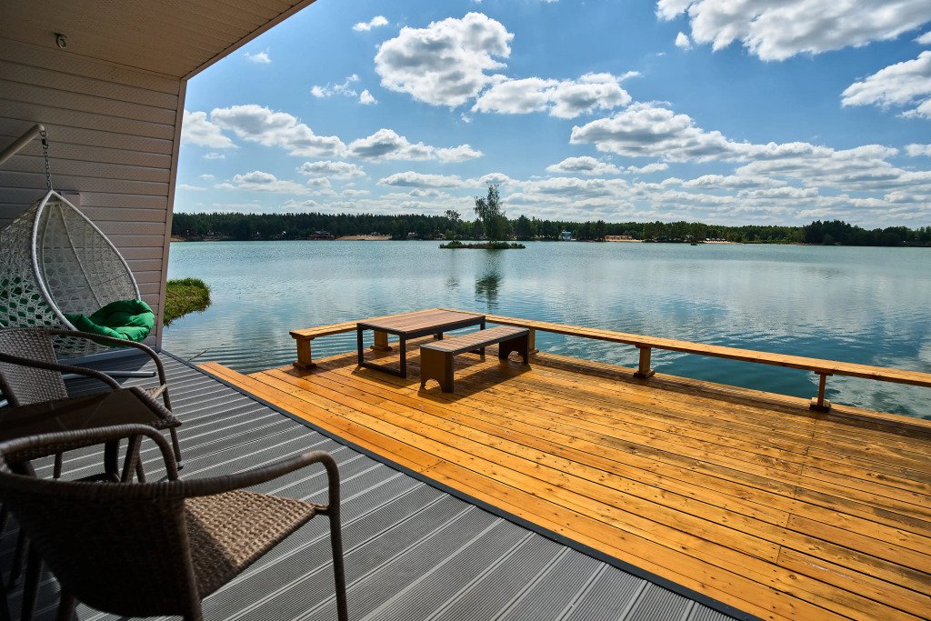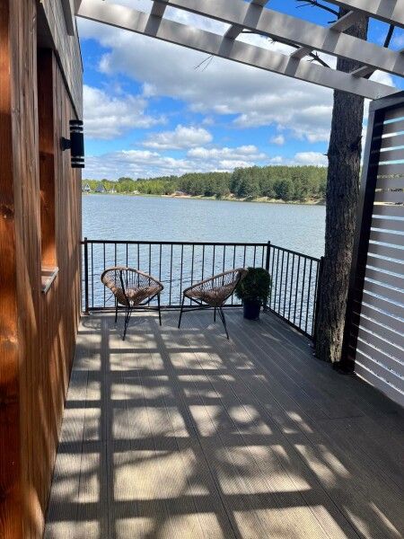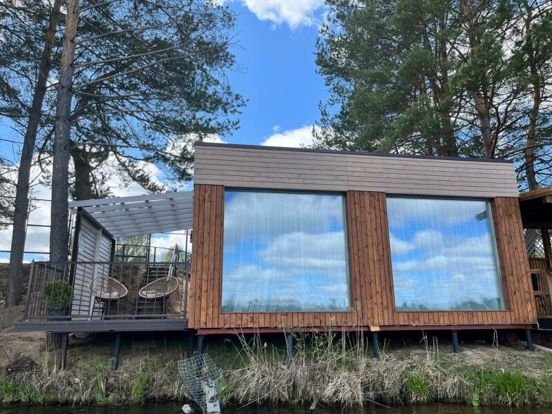 Дом с выходом к водоему. Собственная терраса с лаунж зоной. Около дома есть мангальная зона. Площадь дома 34 кв. м. Потрясающий вид из окон!