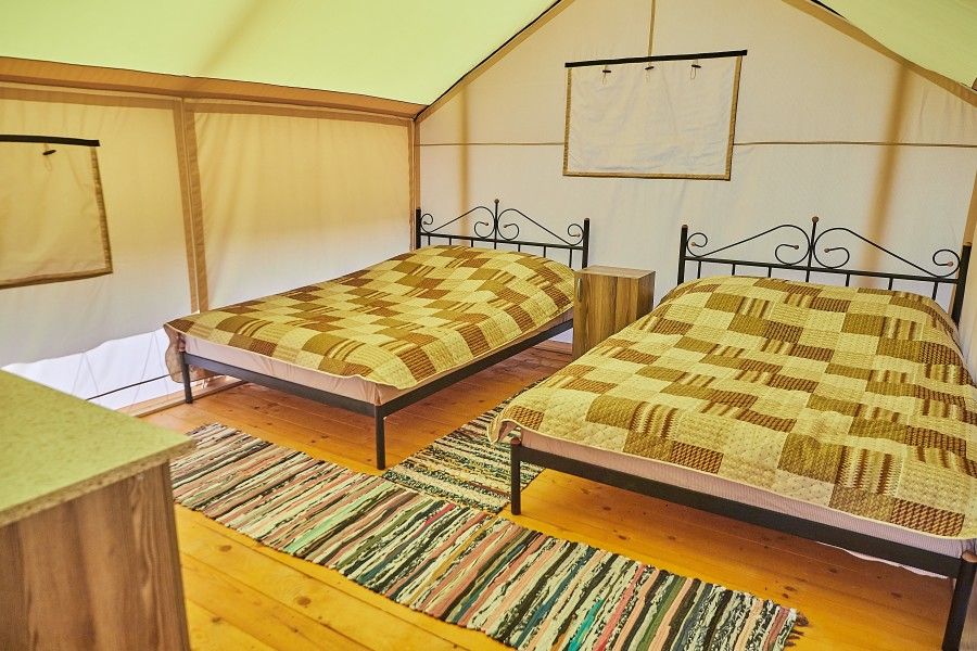 Две двуспальные кроватиВ глэмпинге