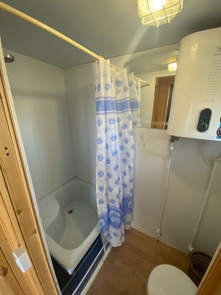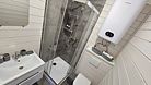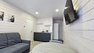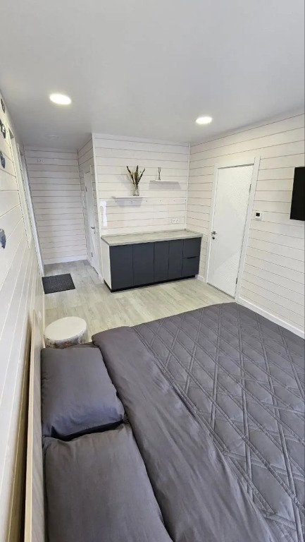 Ванная комната: душевая кабина, туалет, стиральная машина, фен. Спальная комната (изолированная) с одной двуспальной кроватью, матрас ортопедический 160*200; мини-холодильник; тумба; вешалка; комплект постельного белья.