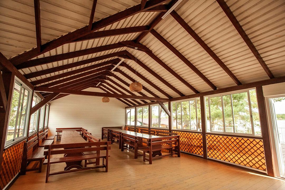 Шатер идеально подходит для праздника на природе, в окружении леса и озера. Свежий воздух и ароматы трав и древесины создают уникальную атмосферу. Гостей ожидает просторная территория, мангальная зона и холодильник для комфортного времяпрепровождения.